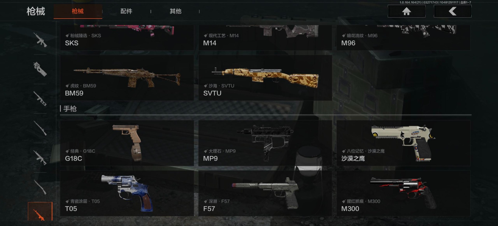 库存价值64.7 6近战武器 4金套装 12金枪皮 可修改实名 【柯恩币数量】2564k现金库51m【角色装扮(金)】使徒·欧瑞恩,冥河,深潜行者 II,苍白隐者·伪装服【近战武器】苍穹利爪,赤火炉心,瑞兔折刀,涂鸦利刃,下弦月,来战·开山刀【金色枪皮】地脉深处·ACE31,近卫荣誉·RPK16,千炼铁阵·14,百锻铁骑·AEK,镀火熔金·H416,林中人·FAL,冰河碎影·14,旧王圣谕·VSS,旧王圣谕·QBZ191,伦琴幻影·AX50,利齿风暴·MPX,告丧夜曲·AR57【紫色枪皮】护命金翎·M24,幻域莎绫·M4A1,伦琴计量·USAS12,典礼武备·14,粉绒臻选·AN94,鱼跃丹青·QBU191,逆火玄石·AEK,鱼跃丹青·DT MDR,旗帜脉冲·M110,利齿风暴·T79,猩红羽翼·VSS,顶级外设·AX50,动感舞步·ACE31,格勒涂装·AK12,甲胄工艺·T85,甲胄工艺·BM59,甲胄工艺·T03,甲胄工艺·M870,突变系谱·T951,战术大师·AK74N,战术大师·SKS,战术大师·SVDS,战术大师·SJ16,宝石籽料·P90,宝石籽料·MPX,骑士之剑·Groza,恶念·Vector9,涂鸦·MPX,来战·AKM,涂鸦·G18C,自喷网格·H416,极恶·AUG,涂鸦·AK102,突围·FAL,无声暗月·AX50,无声暗月·AR57,危崖敌影·MPX,深蓝·AEK【角色装扮(紫)】和平先锋作战套装,财团之手作战套装,砼城浪客·套装,赤色福星·套装暗区突围 - 安卓 -