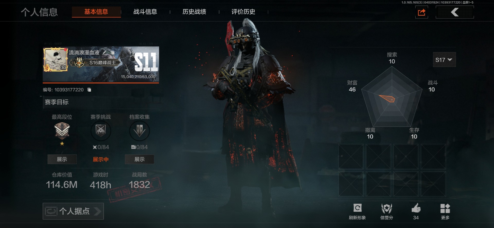 【AQZG2184】等级:30/段位:专家/仓库价值(百万):17.8/柯恩币:6750000/瀚星斩铁/明刀绣春/钢铁壁垒作战服/深潜行者II/冥河