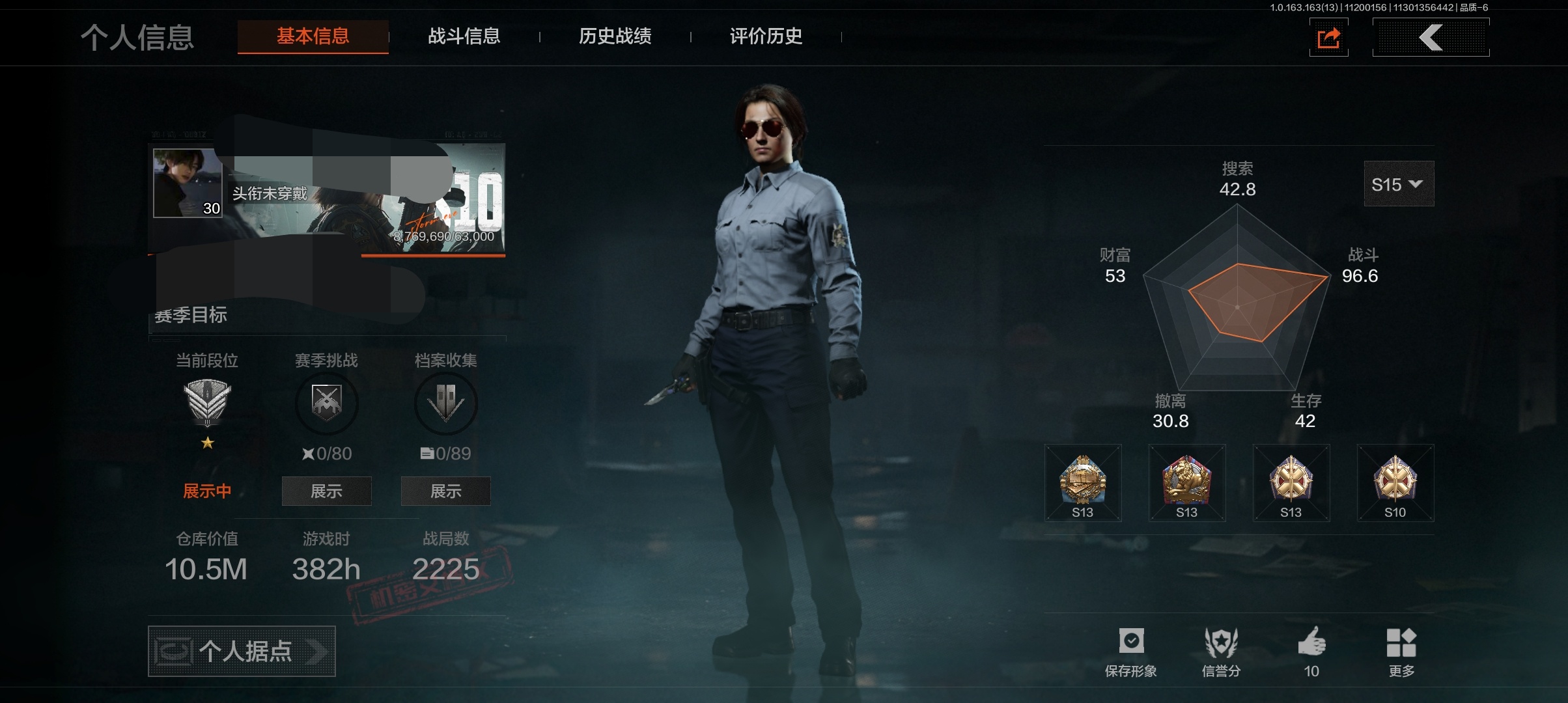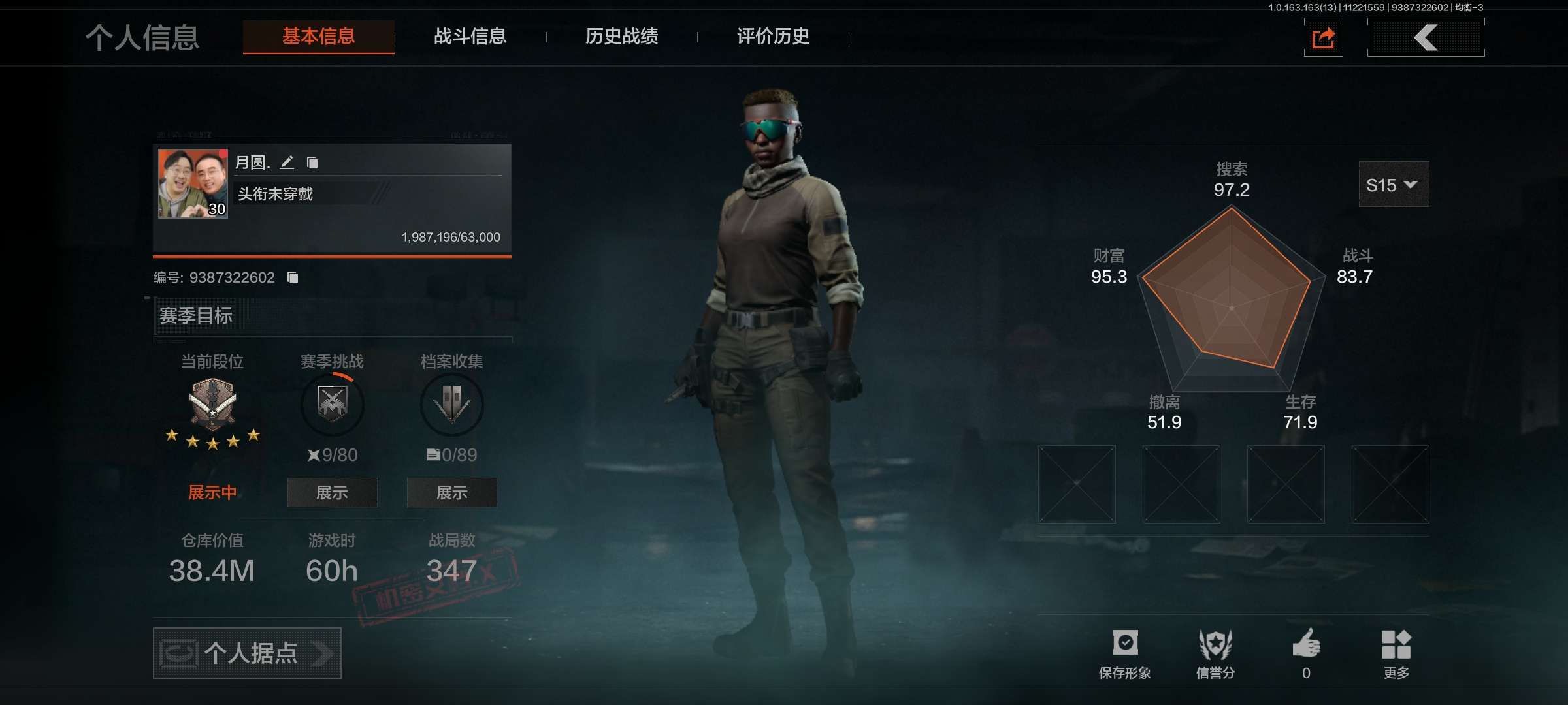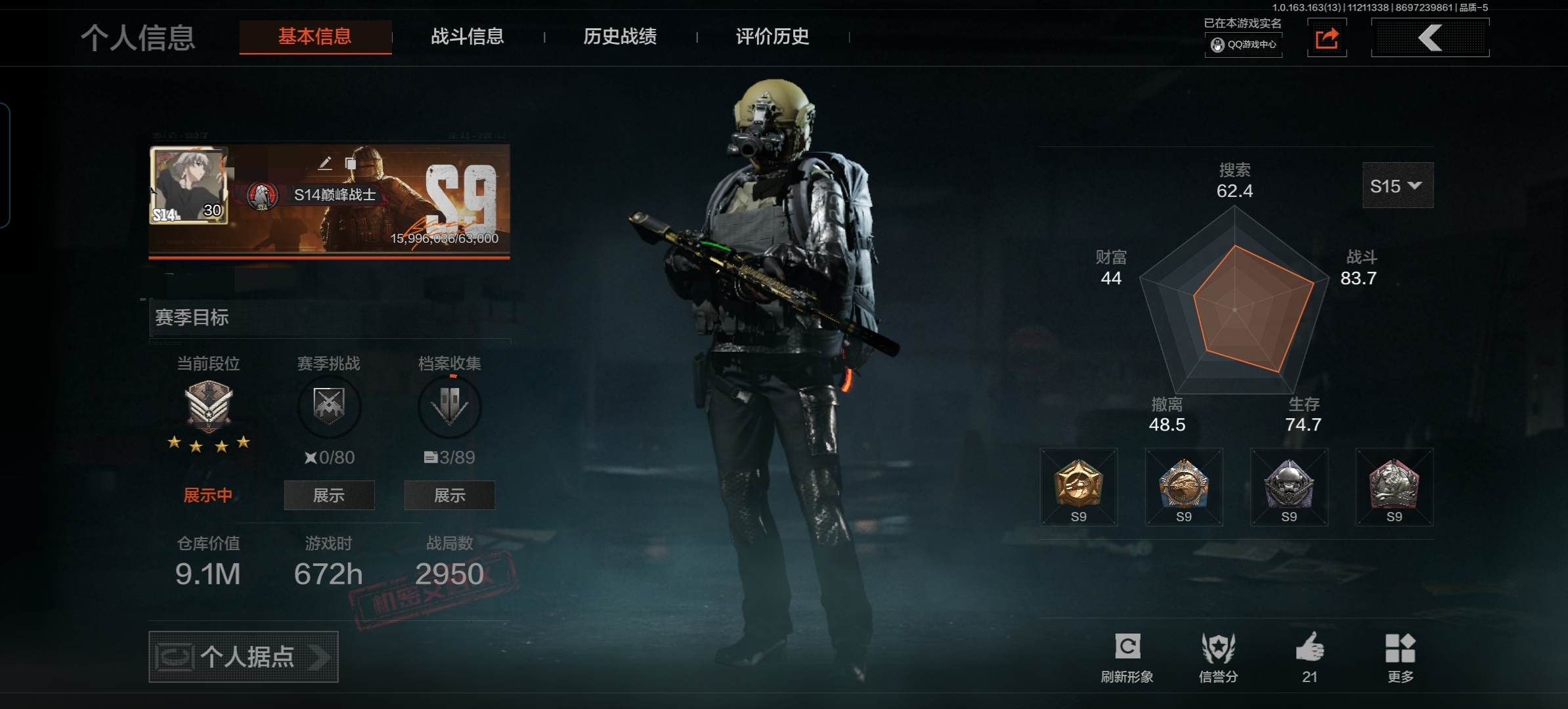 AQ380安Q--仓库价值:38.4M 科恩币:36767K 1刀皮: 工兵铲 1金皮:旧王圣谕·VSS 武器:战术大师·AK74M 炎夏浪花·AR57 殷红渐变·MAC10 战术大师·SVDS暗区突围 - 安卓 -