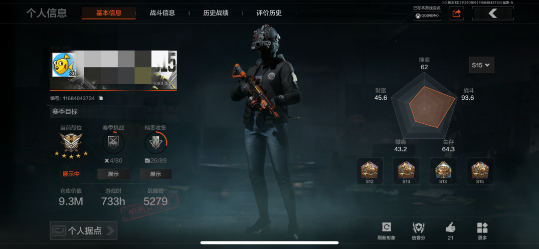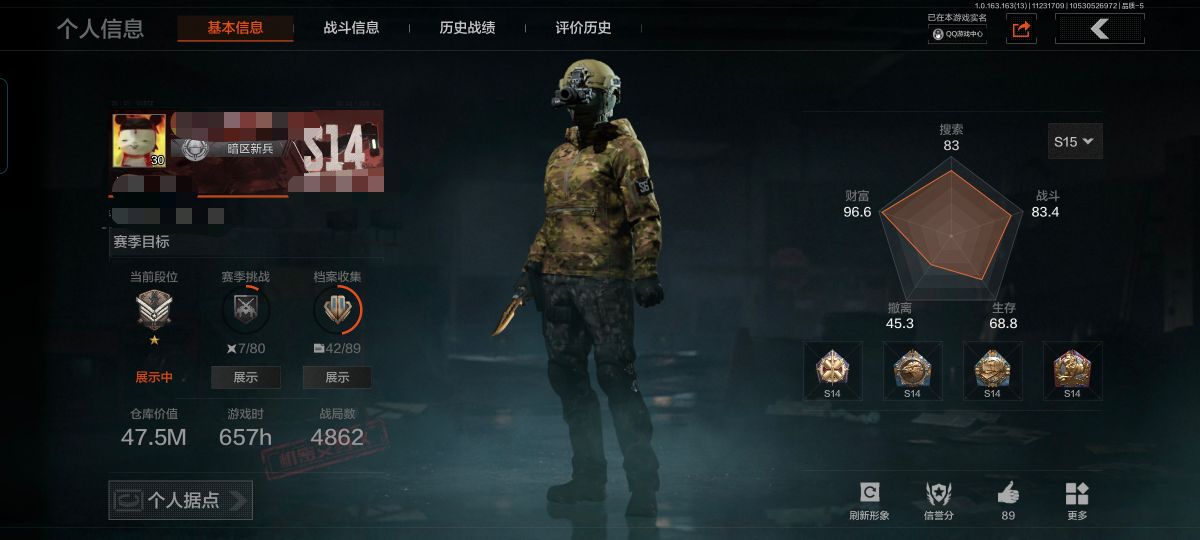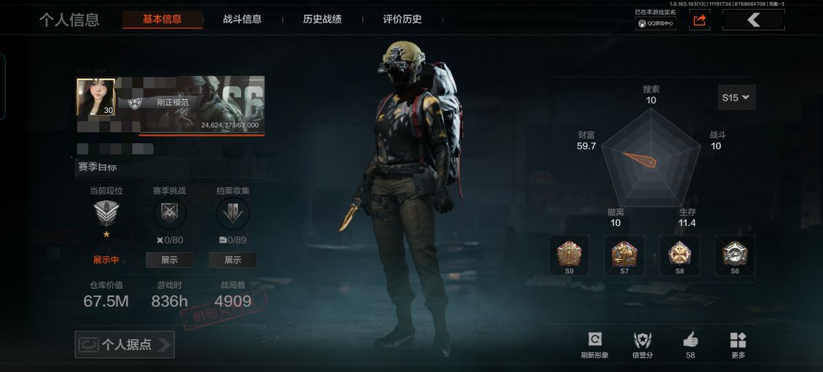 AQ380安Q--仓库价值:38.4M 科恩币:36767K 1刀皮: 工兵铲 1金皮:旧王圣谕·VSS 武器:战术大师·AK74M 炎夏浪花·AR57 殷红渐变·MAC10 战术大师·SVDS
