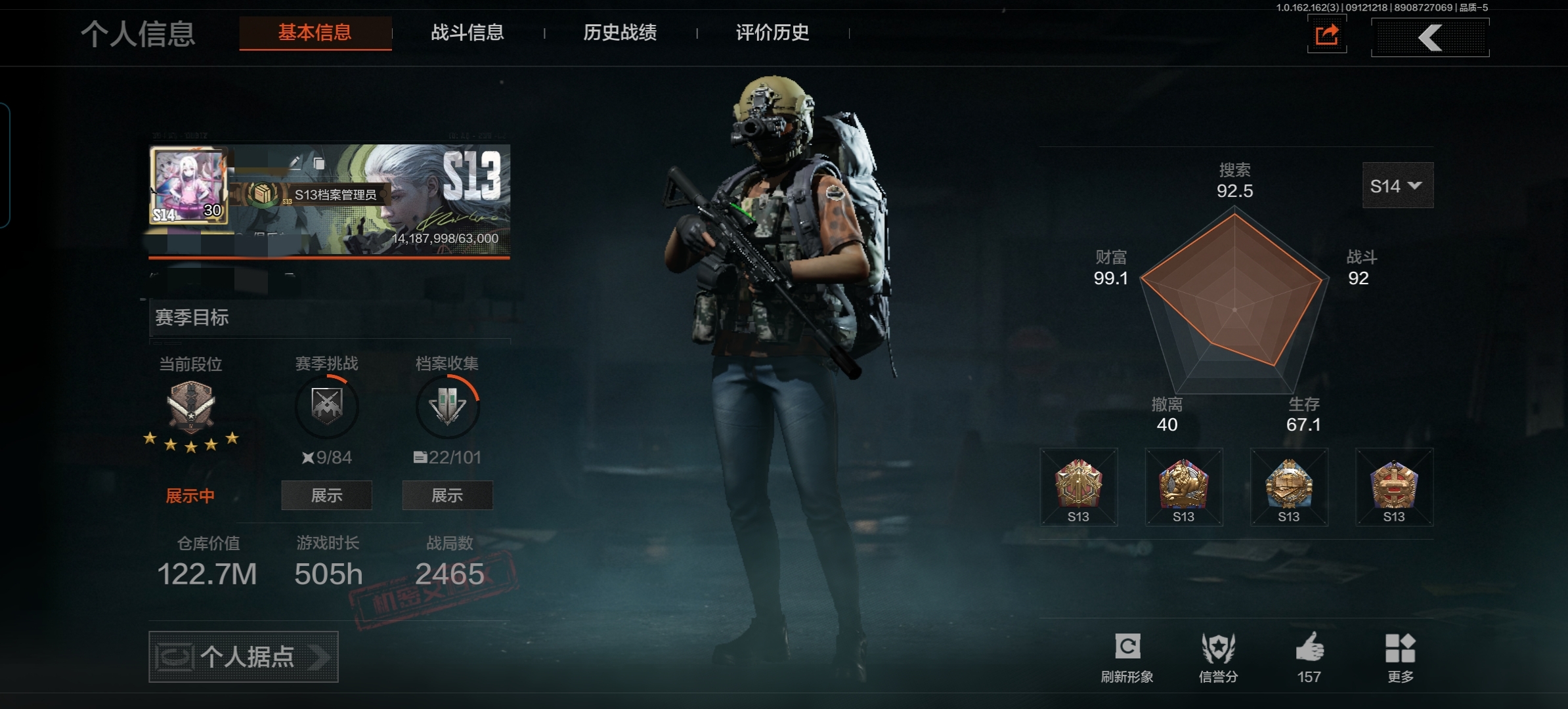 库存价值46.2 10近战武器 4金套装 9金枪皮 可修改实名 【柯恩币数量】:38152【角色装扮(金)】:苍白隐者·伪装服,强尼·银手套装,火绒·塔莉娅,钢铁壁垒作战服【近战武器】:来战·开山刀,收割者,S-07折刀,热能武器·补牢,赢家匕首,瀚星斩铁,盘牙·彻甲短刃,工兵铲,贝利亚黄昏,涂鸦利刃【金色枪皮】:告丧夜曲·AUG,伦琴幻影·H416,骑士之剑·VSS,竞技·FAL,旗帜·AEK,棱光裂变·QBU191,战术大师·QBZ192,告丧夜曲·AR57,利齿风暴·MPX【紫色枪皮】:棱光裂变·莫辛,棱光裂变·AK74N,棱光裂变·AK102,灰鼠幻歌·P90,骑士之剑·AKS74U,无畏·USAS12,百锻寒芒·T951,武侍·SJ16,V·SKS,超越自我·Vector9,超越自我·AR30,利齿风暴·T03,飨宴前兆·QBZ191,鱼跃丹青·M110,竞技·M4A1,逆火·MDR,阴影·AN94,湖冰倒影·ACE31,雪山之王·F2000,雪原凌锋·SVDS,娜迦·RPK16【角色装扮(紫)】:鎏金街头套装,王国卫队礼装暗区突围 - 安卓 -