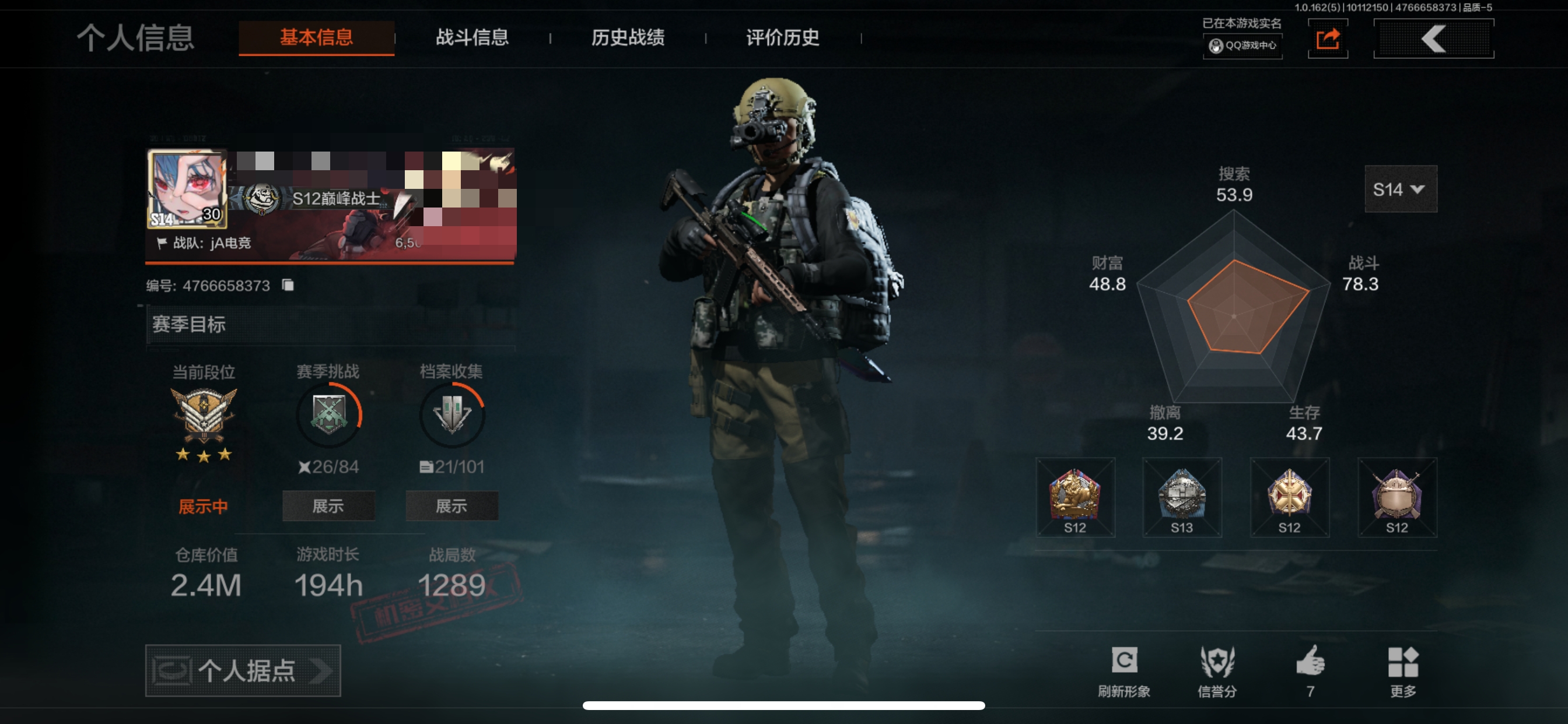 【SJZG1971】等级:30/段位:专家/仓库价值(百万):245/柯恩币:7834000/赢家匕首/工兵铲/旧王圣谕·VSS暗区突围 - 安卓 -