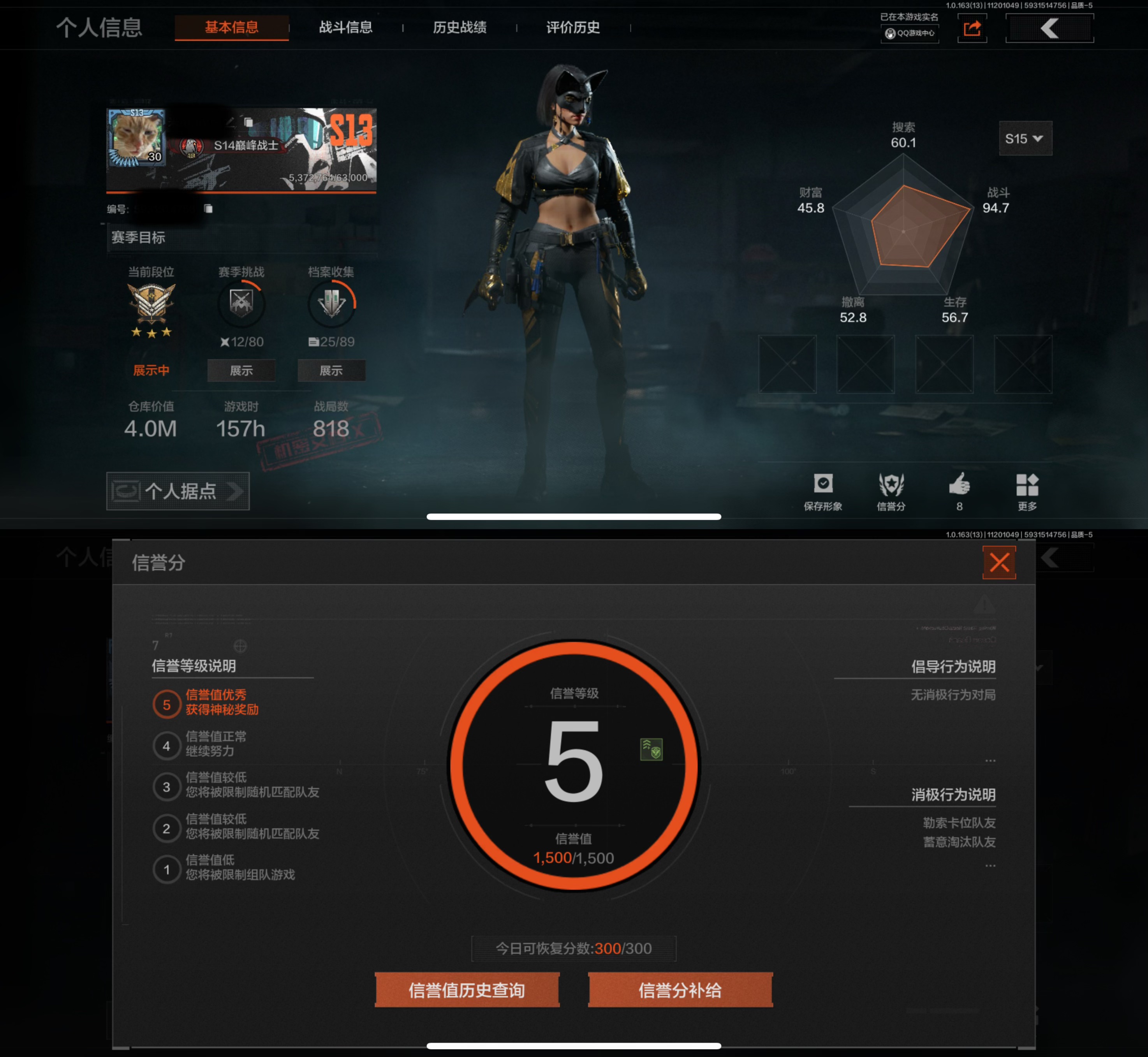 库存价值0.17 3近战武器 1金套装 4金枪皮 可修改实名 【柯恩币数量】:95560【角色装扮(金)】:钢铁壁垒作战服【近战武器】:工兵铲,来战·开山刀,明刀·绣春【金色枪皮】:旧王圣谕·QBZ191,利齿风暴·MPX,浮鳞影青·QBZ192,骑士之剑·VSS【紫色枪皮】:棱光裂变·AK74N,骤羽尖啸·MPX,利齿风暴·T03,利齿风暴·T79,棱光裂变·莫辛,猩红羽翼·VSS,伦琴计量·USAS12,伦琴计量·T951,典礼武备·14,秘域鎏金·RPK16,幽灵大游行·VSS,来战·AKM,北国内卫·AN94,骑士之剑·ACE31,骑士之剑·SJ16【角色装扮(紫)】:都市夜影套装暗区突围 - 安卓 -