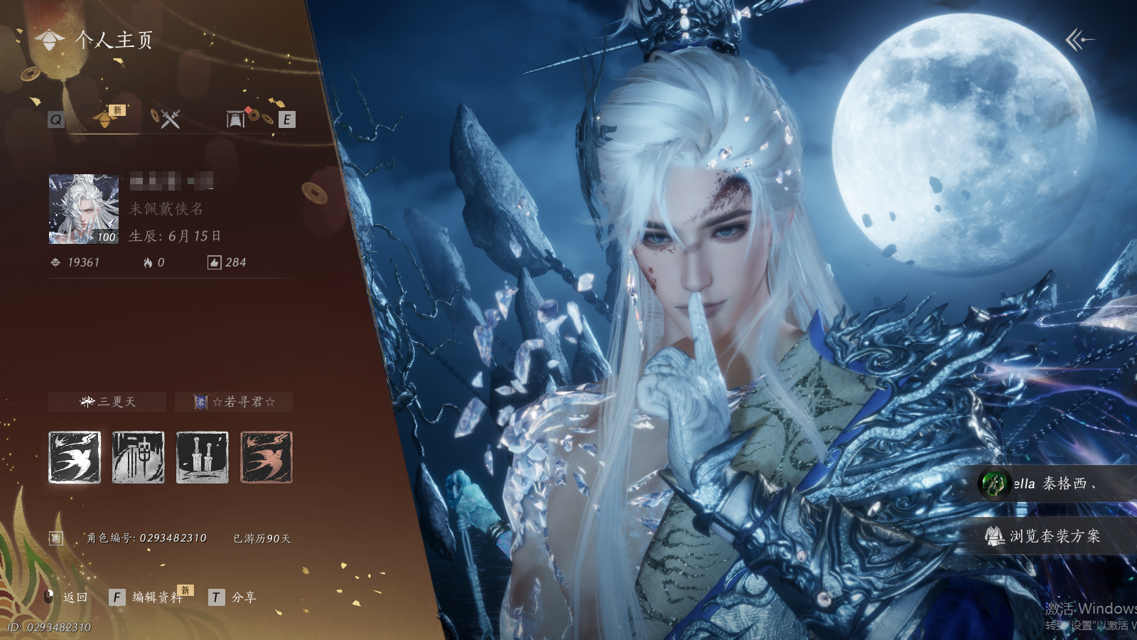 风华值36963 武林造诣(鹅)34980 已用八音窍数量3 未用八音窍数量0 等级100 角色性别【文本】女 【绝境】 【无换绑CD】 【未绑定或可换绑】 【未注册】 【不支持人脸包赔】 【女】 【无】 【是】 【是】 稀有套装4 稀有发型1 套装40 武器外观8 坐骑3 其他武器外观4 稀有套装:问春何苦,晏平生,青丘千岁,瑞鹤仙; 稀有发型:鹊桥仙; 套装:云中锦书,青玉案,山水一砚,剑影藏心,鹊踏枝,清音晓,贺新词,雁还乡,红尘书,花问春言,芳时歇,午风清,南风熏,一心三藏,逐红花,遥夜行,江湖客,上青云,花月天真,舞花间,松花玉兰,墨沉丹朱,白龙,青阳,赤沙,丹雀,射虎南山,金池鲤,瑞鹤仙,翠羽顾,雪狸儿,梨花泪,清河强者,西凉鬼啸,鹊衔夜,蜀戏春,龙凤缠,九间当铺,驰走西风,百花应诏; 武器外观:霜枫愁,木棍,葱葱那年,月中诗,霜枫诀,霜枫眠,霜枫尽,霜枫横; 坐骑:飞毛腿,白义,飒露子; 其他武器外观:霜枫愁,木棍,葱葱那年,月中诗;