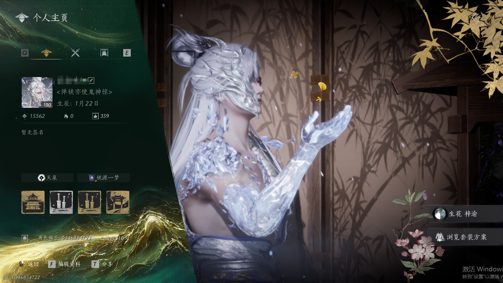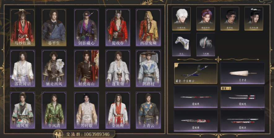 风华值15562 武林造诣(鹅)35272 已用八音窍数量3 等级100 角色性别【文本】男 【绝境】 【无换绑CD】 【未绑定或可换绑】 【不支持人脸包赔】 【男】 【无】 【是】 【是】 稀有套装2 稀有武学奇术1 武器外观2 坐骑2 稀有套装:如碎霜天,晏平生; 稀有武学奇术:青鸾望月; 武器外观:葱葱那年,霜枫诀; 坐骑:白义,盗骊;