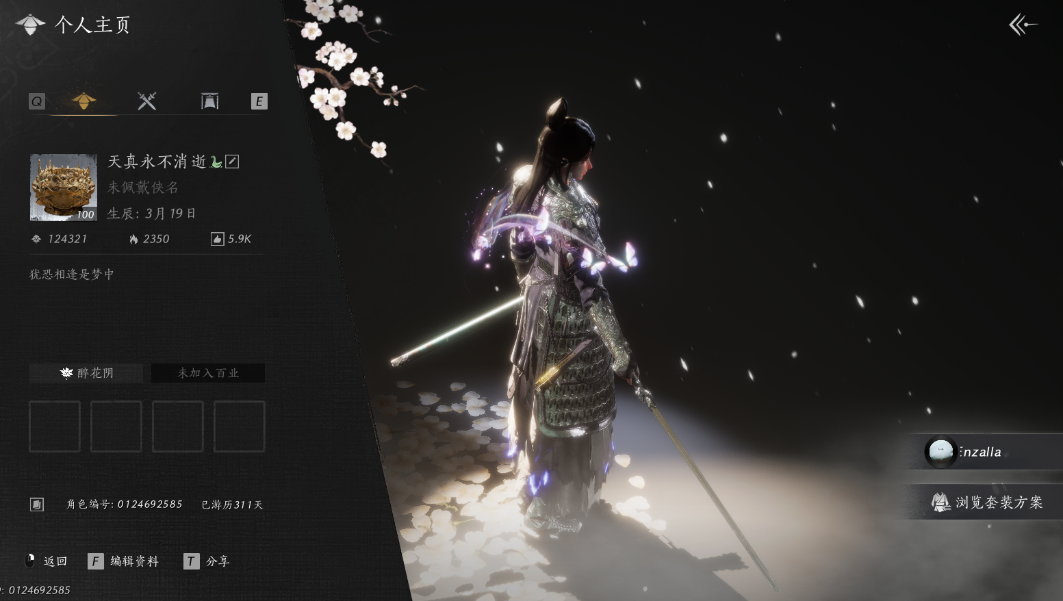 【如碎瑞鹤仙小号带万剑归宗特效】 风华值30024 武林造诣(鹅)35990 已用八音窍数量3 未用八音窍数量0 等级100 角色性别【文本】男 【绝境】 【无换绑CD】 【未绑定或可换绑】 【未注册】 【不支持人脸包赔】 【男】 【无】 【是】 【是】 稀有套装5 稀有发型1 稀有武学奇术1 套装18 武器外观5 坐骑3 稀有套装:葬花吟,乌纱红漪,晏平生,如碎霜天,瑞鹤仙; 稀有发型:锦瑟华年; 稀有武学奇术:万剑归宗; 套装:金鳞阙,云中锦书,快哉风,青玉案,贺新词,火宅三更,午风清,一心三藏,逐红花,遥夜行,白龙,纵横,射虎南山,瑞鹤仙,落花闻诏,清河强者,驰走西风,百花应诏; 武器外观:霜枫眠,霜枫横,霜枫诀,霜枫寒,霜枫愁; 坐骑:飞毛腿,白义,疾追豹;燕云十六声 - 官服 -