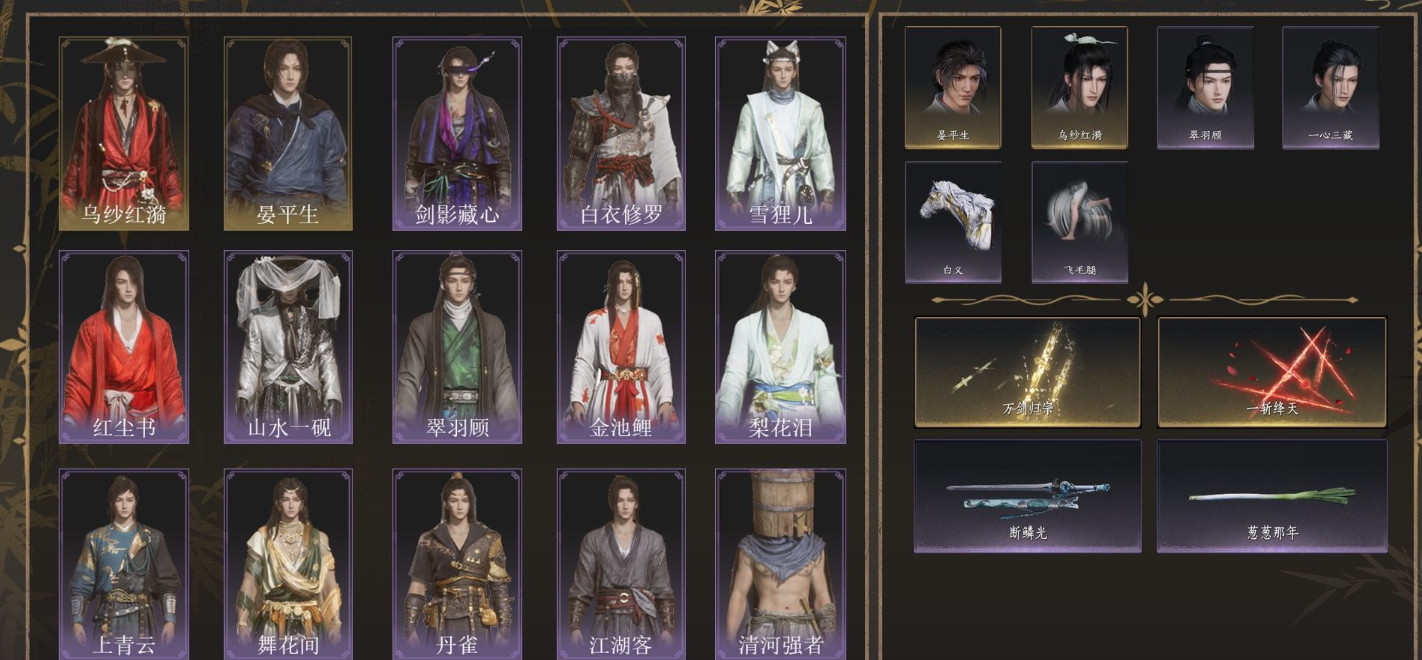 风华值73521 武林造诣(鹅)35509 已用八音窍数量9 未用八音窍数量1 等级100 角色性别【文本】男 【绝境】 【无换绑CD】 【未绑定或可换绑】 【不支持人脸包赔】 【男】 【无】 【是】 【是】 稀有套装6 稀有武器外观1 稀有武学奇术7 稀有坐骑1 套装12 武器外观5 坐骑7 稀有套装:沧海龙吟,如碎霜天,无间无相,葬花吟,乌纱红漪,晏平生; 稀有武器外观:藏音·千古断云(五金); 稀有武学奇术:一斩绛天,万剑归宗,天龙舞火,龙战千山,鳞跃天倾,黄龙断戟,金刚慑孽; 稀有坐骑:倚鹿顺风; 套装:啸月,白龙,阮郎归,蝎心蛟影,落花闻诏,纵横,青草原,九间当铺,剑影藏心,风花雾,鹊衔夜,蜀戏春; 武器外观:葱葱那年,木棍,出竹意,霜枫横,战鳞光; 坐骑:疾追豹,飒露子,白义,盗骊,烬花舆,琼林客,飞毛腿;
