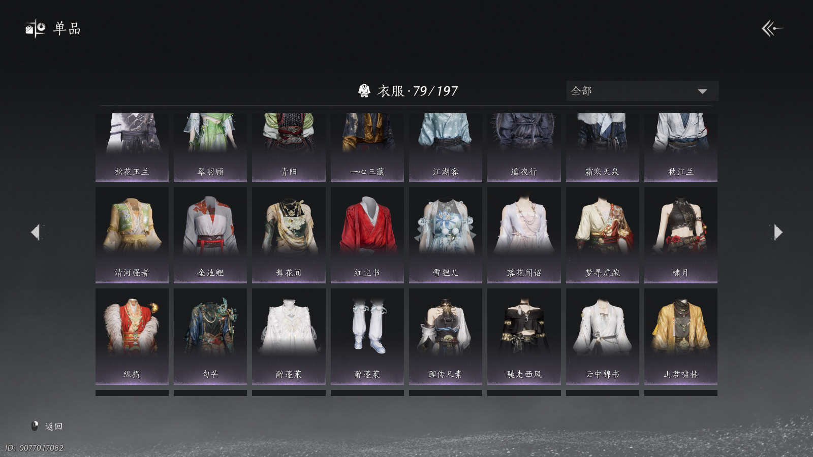 WQY-043643583 【多套258带云归头和红头】 风华值46903 武林造诣(鹅)34480 已用八音窍数量4 未用八音窍数量0 等级100 角色等级100 角色性别【文本】女 【无换绑CD】 【绝境】 【无冷却】 【未绑定或可换绑】 【密保手机】 【未注册】 【不支持人脸包赔】 【是】 【女】 【无】 【邮箱帐号】 【网易邮箱账号】 【是】 【是】 【未拥有】 【已知晓】 【自己上传】 稀有套装3 稀有发型2 稀有武学奇术4 套装44 武器外观8 武学奇术6 坐骑4 其他武器外观8 稀有套装:葬花吟,问春何苦,晏平生; 稀有发型:云深归处,栖彤霞; 稀有武学奇术:一斩绛天,万剑归宗,黄龙断戟,金刚慑孽; 套装:金鳞阙,剑影藏心,风花雾,云中锦书,青玉案,山水一砚,鹊踏枝,贺新词,雁还乡,红尘书,芳时歇,午风清,南风熏,相思曲,望乡客,风入画,一心三藏,逐红花,遥夜行,江湖客,雨停荷,上青云,骊山猎,舞花间,松花玉兰,青阳,白龙,丹雀,射虎南山,白衣修罗,清河强者,阮郎归,金池鲤,青草原,翠羽顾,雪狸儿,梨花泪,鹊衔夜,蜀戏春,龙凤缠,西凉鬼啸,九间当铺,驰走西风,月如银; 武器外观:月中诗,飒陌耶,木棍,葱葱那年,大满贯,出竹意,长安不见,凌霜触雪; 武学奇术:墨舞云,墨泼风,鹤破青冥,北辰星拱,御帚飞鸡,金穗丰穰; 坐骑:飞毛腿,白义,疾追豹,琼林客; 其他武器外观:月中诗,粽不粽,木棍,葱葱那年,大满贯,出竹意,长安不见,凌霜触雪;燕云十六声 - 官服 -