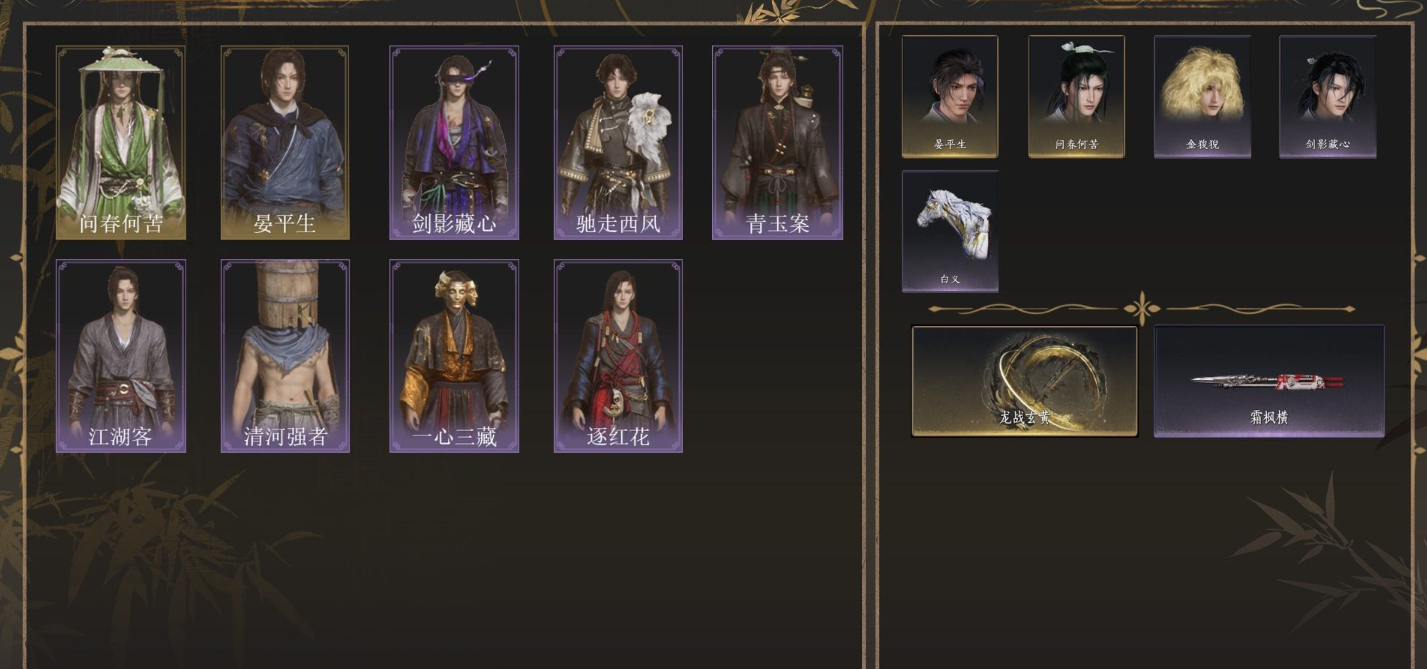 风华值40047 武林造诣(鹅)32064 已用八音窍数量3 等级98 角色性别【文本】女 【绝境】 【无换绑CD】 【未绑定或可换绑】 【不支持人脸包赔】 【女】 【无】 【是】 【是】 稀有套装5 稀有发型1 稀有武学奇术4 套装2 武器外观1 坐骑4 其他武器外观1 稀有套装:如碎霜天,瑞鹤仙,问春何苦,葬花吟,晏平生; 稀有发型:玉霜翎; 稀有武学奇术:天龙舞火,鳞跃天倾,龙战千山,黄龙断戟; 套装:白龙,剑影藏心; 武器外观:霜枫愁; 坐骑:飒露子,白义,飞毛腿,盗骊; 其他武器外观:粽不粽;