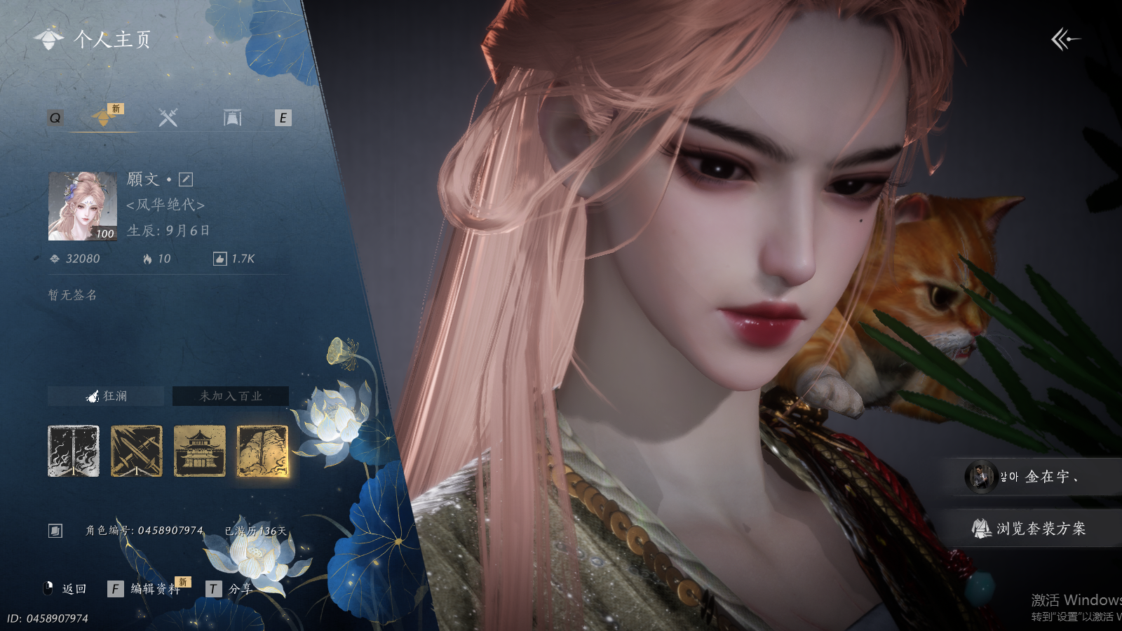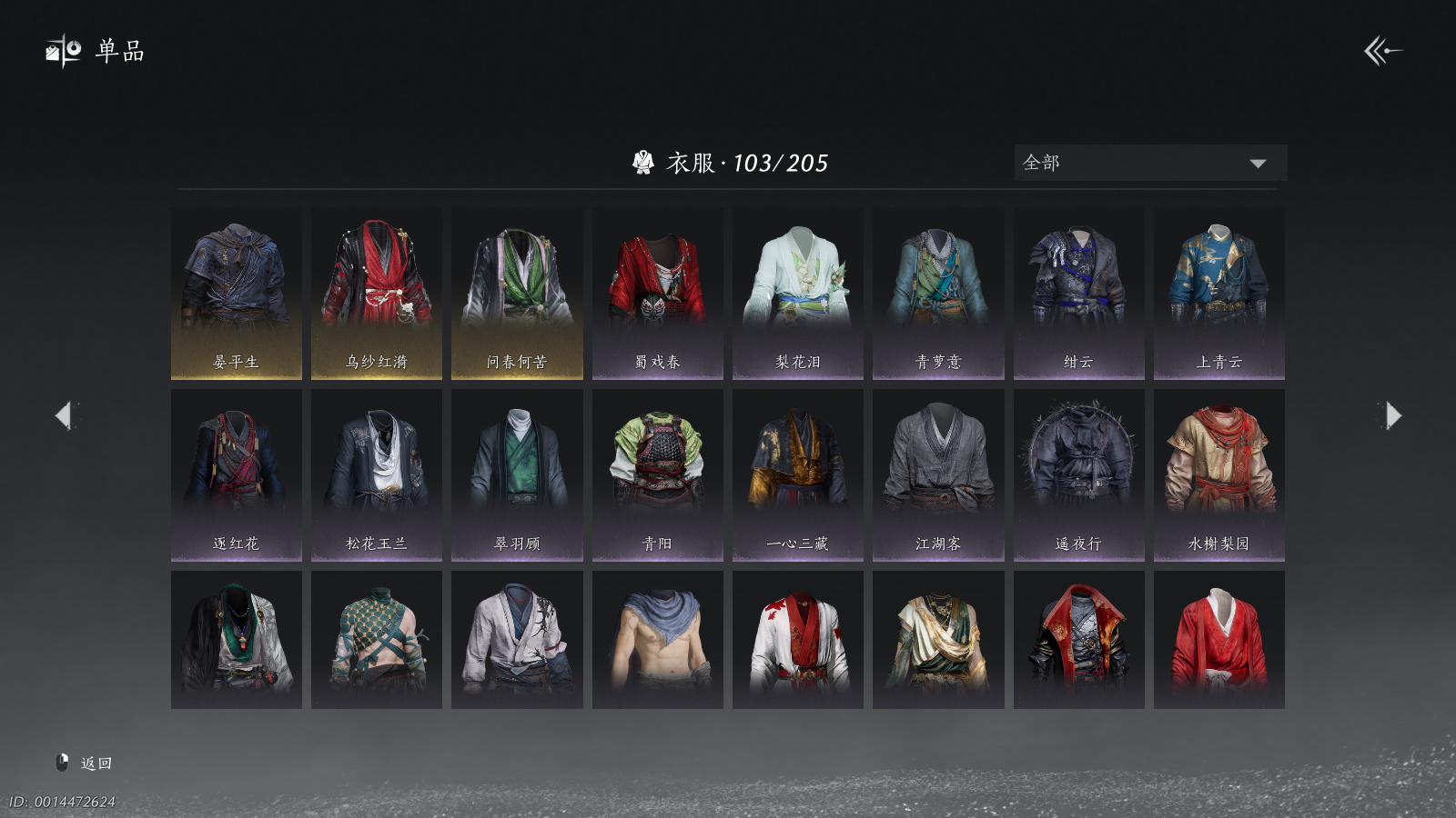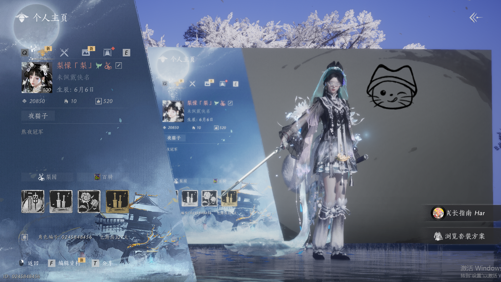 XY-076653948 风华值80835 武林造诣(鹅)36060 已用八音窍数量13 等级100 角色性别【文本】女 【绝境】 【无换绑CD】 【未绑定或可换绑】 【未注册】 【不支持人脸包赔】 【女】 【防沉迷】 【安卓】 【是】 【是】 【否】 稀有套装4 稀有发型3 稀有武器外观2 稀有武学奇术3 套装6 稀有套装:葬花吟,月中天阙,风吟彼岸,青丘千岁; 稀有发型:芙蓉泣露,栖彤霞,瀚海千山; 稀有武器外观:藏音·韶光四极(五金),藏音·北溟有鱼(五金); 稀有武学奇术:青鸾望月,龙战千山,天龙舞火; 套装:剑影藏心,金池鲤,阮郎归,夜郎幽问,蜀戏春,九间当铺;燕云十六声 - 官服 -