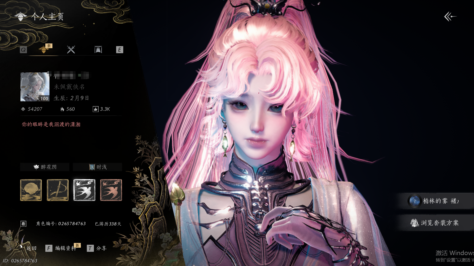 【醉蓬莱,一颗未用八音,心法6666】 风华值20850 武林造诣(鹅)34227 已用八音窍数量0 未用八音窍数量1 等级100 角色性别【文本】女 【绝境】 【无换绑CD】 【未绑定或可换绑】 【未注册】 【不支持人脸包赔】 【女】 【无】 【ios】 【是】 【是】 【否】 稀有套装2 稀有发型2 套装27 武器外观5 坐骑2 稀有套装:葬花吟,晏平生; 稀有发型:锦瑟华年,百花应诏; 套装:葬花吟,云中锦书,山水一砚,红尘书,剑影藏心,芳时歇,一心三藏,逐红花,遥夜行,江湖客,上青云,醉蓬莱,舞花间,松花玉兰,丹雀,争戈,白衣修罗,燃金明,金池鲤,落花闻诏,翠羽顾,雪狸儿,梨花泪,清河强者,蜀戏春,南疆秘语,蝉翼未来; 武器外观:霜枫眠,霜枫尽,出竹意,霜枫横,霜枫愁; 坐骑:白义,琼林客;