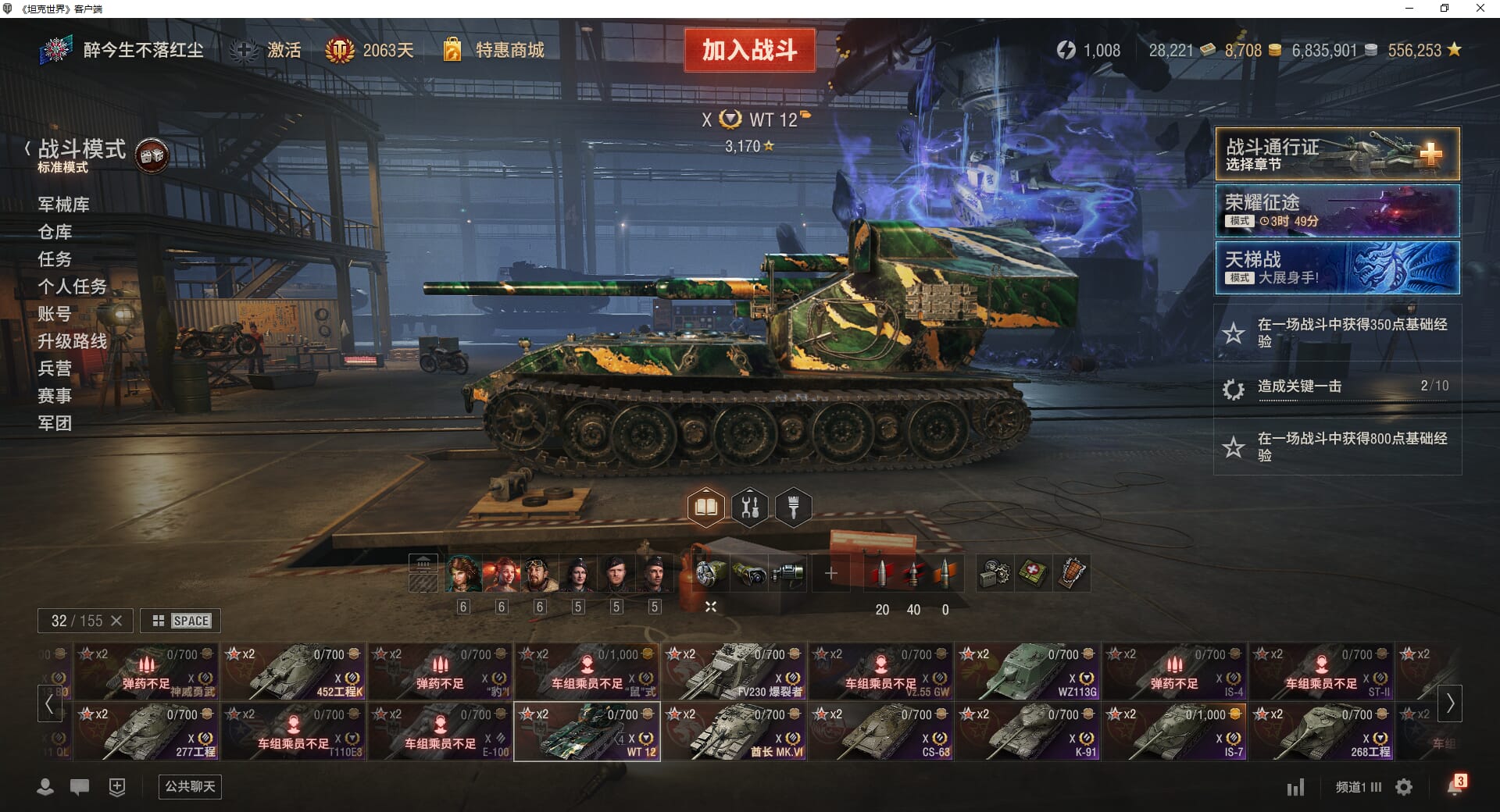 TD1264/无绑定-绝对安全/全部坦克12/金币坦克2/10级4/9级1/8级3/10级/BZ-75/T-100LT/T-62A/FV4005/9级/FV4004康威/8级/252工程U/御夫座/CS-52LIS/乘员116/债券1610/金币1377/银币779w/全局38534坦克世界 - 360国服 -