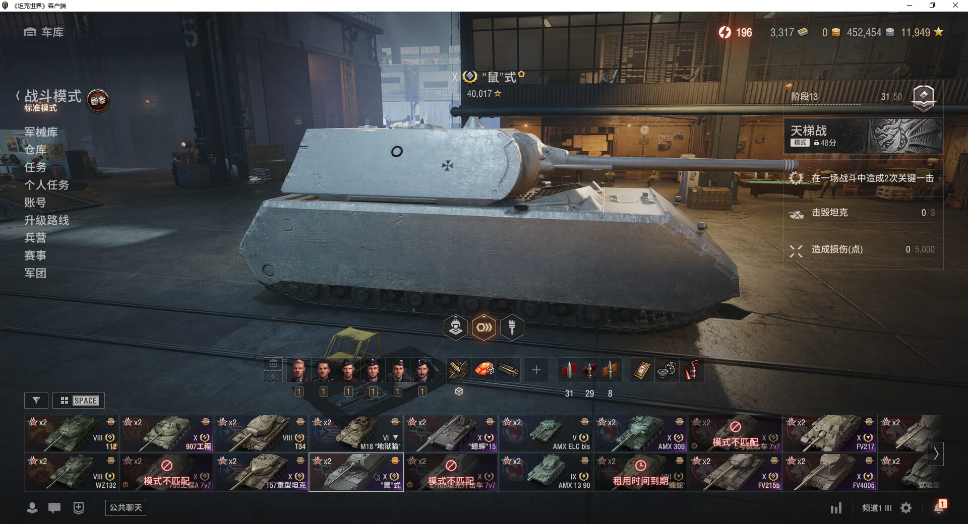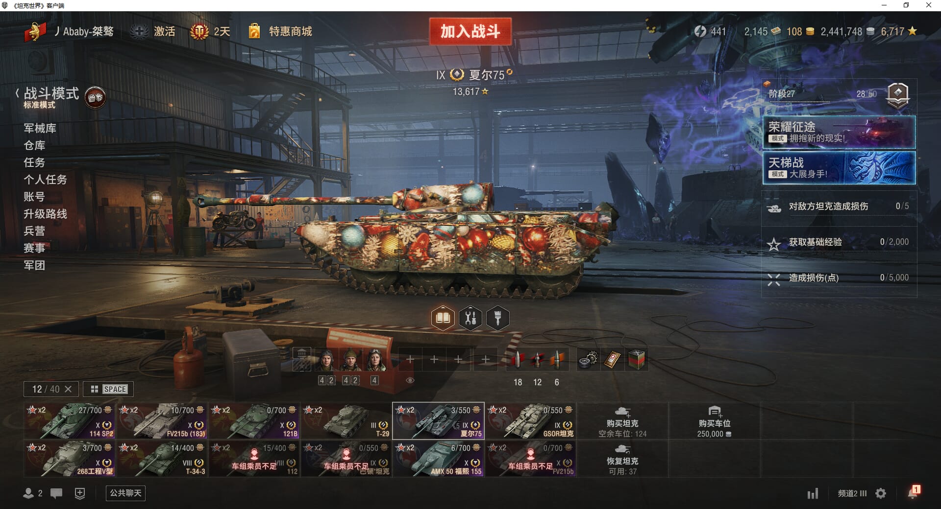 TD1278/全部坦克16/十级坦克9/9级坦克1/8级坦克3/112/10级/907工程/T57重型坦克/鼠式/蟋蟀15/AMX30B/FV215b/FV217/FV4005/FV215b183/债券3317/银币452454/全局11949/乘员135/风格3/涂装18/