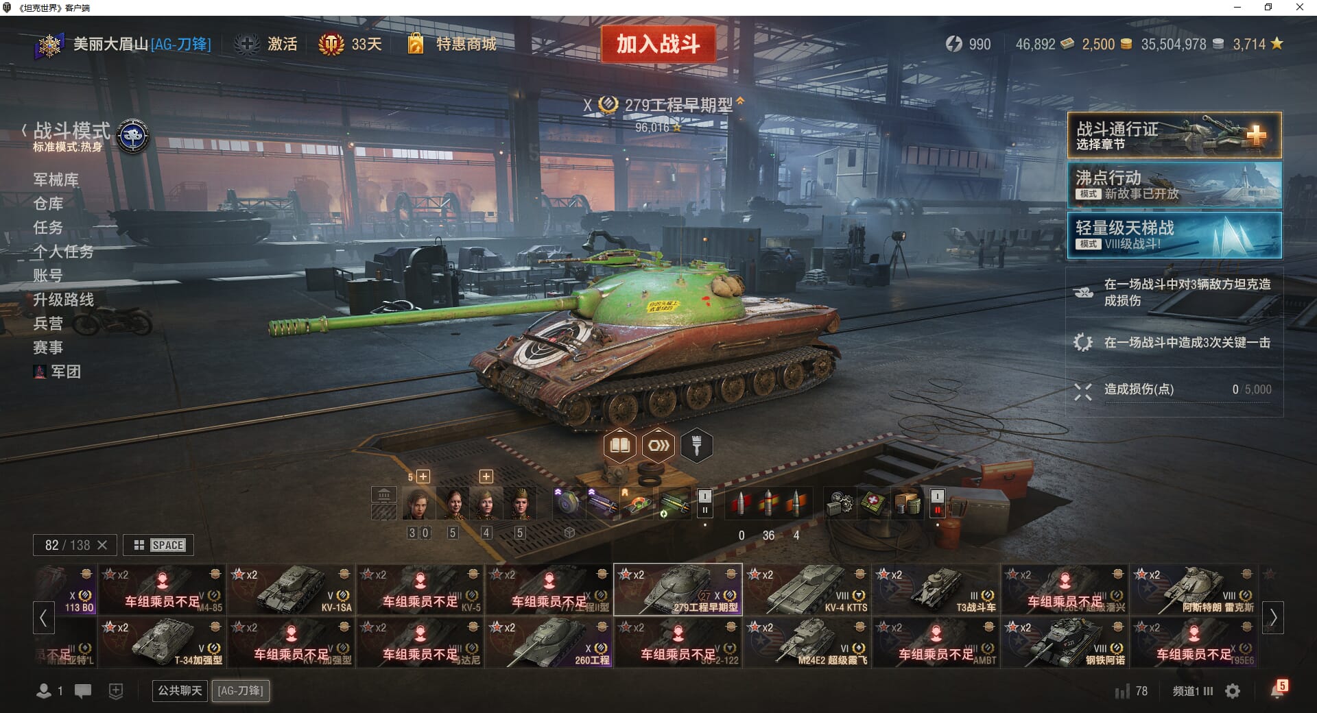 TD634/无绑定-绝对安全/坦克134/金币坦克81/279工程/10级52/9级9/AE一期/4号先进战车/眼镜蛇/8级38/59式/天蝎/奇美拉/10级/121B/113BO/260工程/279工程早期型/T95E6/VK7201/CC狮/FV215b/豹I/WZ113G/T-100LT/140工程/430工程U/T-62A/277工程/705工程A/IS-4/IS-7/ST-II/268工程/M48A5/T110E5/T110E3/T57重型坦克/T110E4/E-50M/E-100/VII号坦克/鼠式/蟋蟀15/UDES15/16/KRV/Strv103B/AMX13105/查狄伦25t/AMX50B/AMXM4/PM40/65/犀牛/CC3弥诺陶洛斯/曼蒂科尔/百夫长AX/超级征服者/FV217/FV4005/征服者GC/Vz.55/CS-63/60TPL/STB-1/债券2.8w/银币2300w/全局3700/乘员538/风格6/涂装6