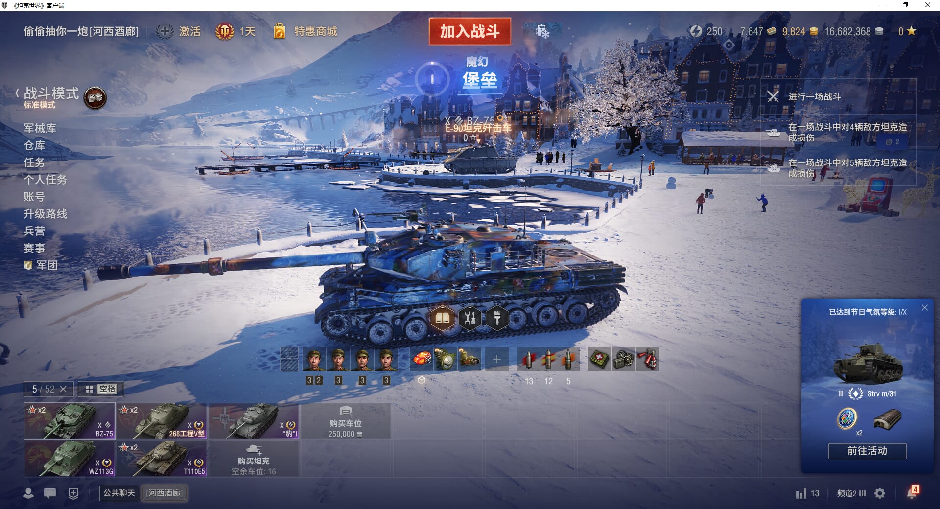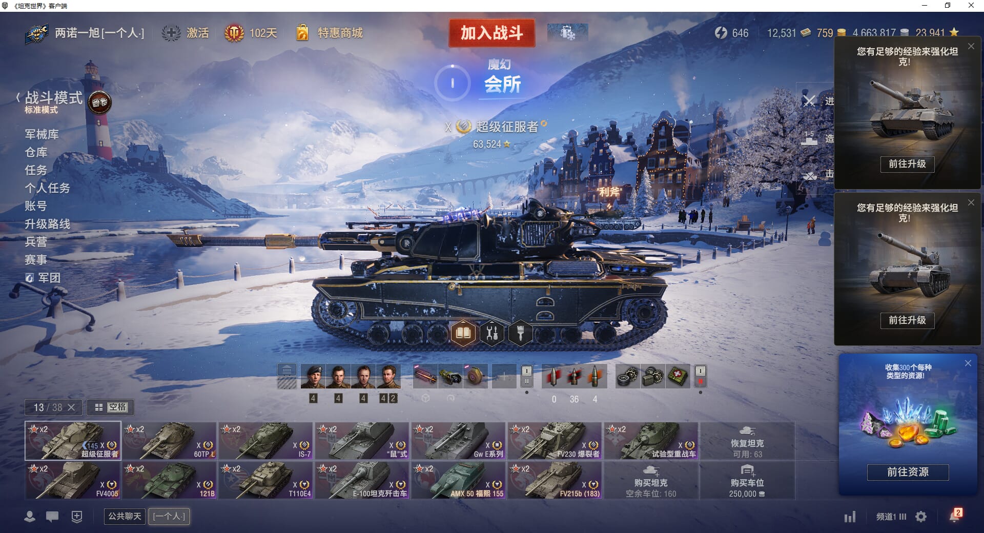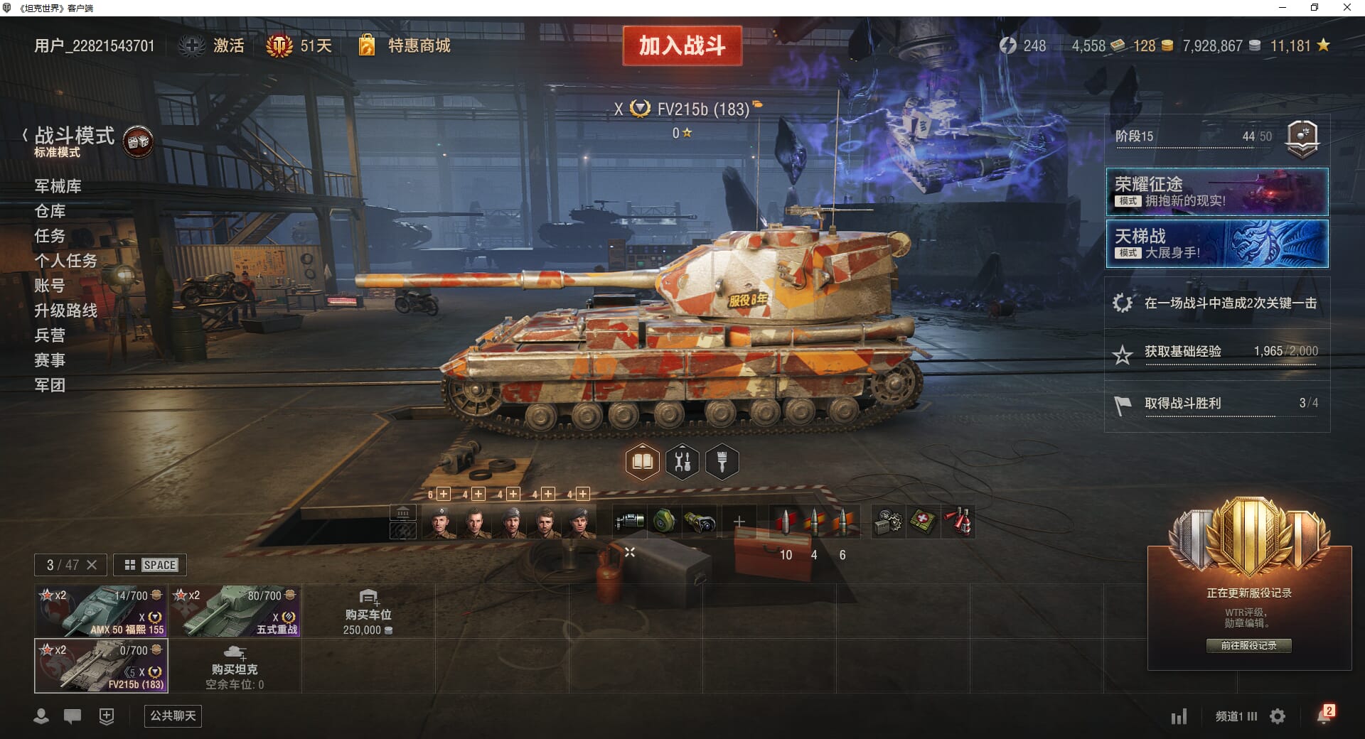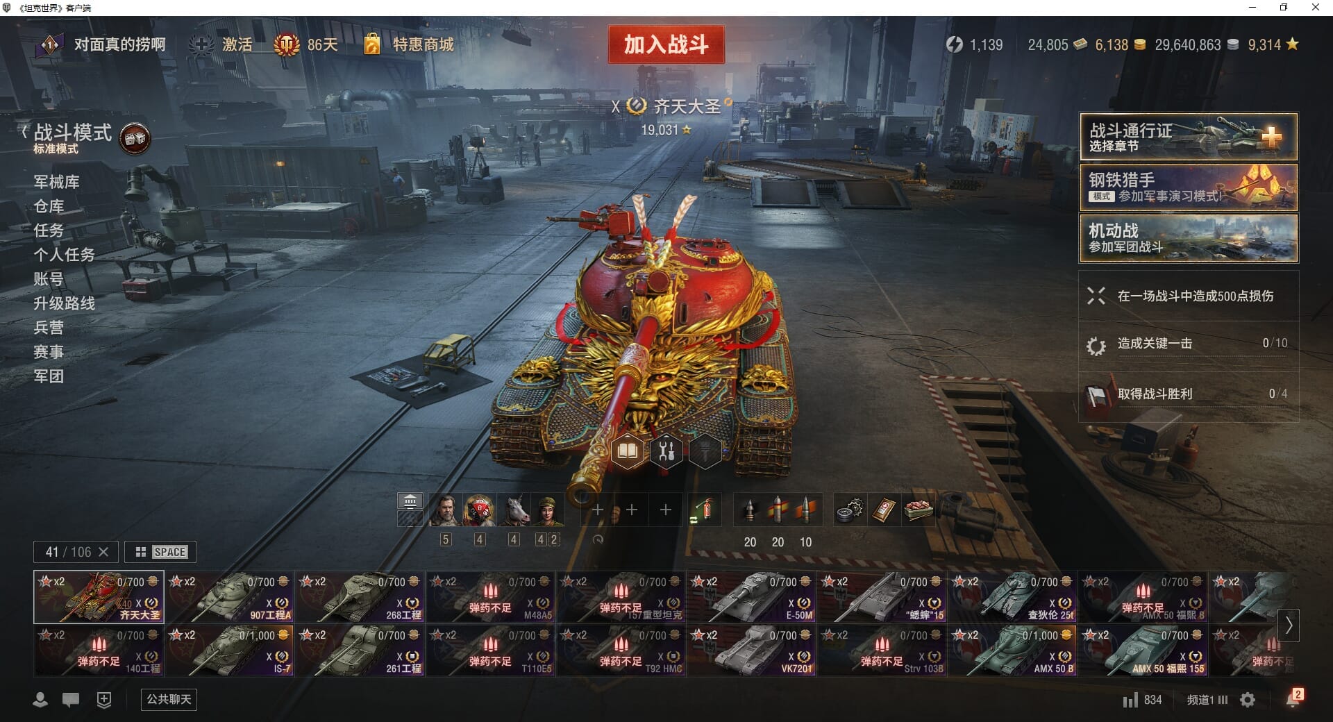 TE905/全部坦克38/10级坦克15/9级坦克3/8级坦克8/10级/IS-7/M48A5/FV217/Vz.55/430工程U/277工程/705工程A/261工程/T57重型坦克/E-100坦克歼击车/AMXM4{1954}/AMXM4福熙155/FV215b183/60TPL/五式3型炮战车/债券8771/金币2476/银币1580万/全局30837/乘员178/