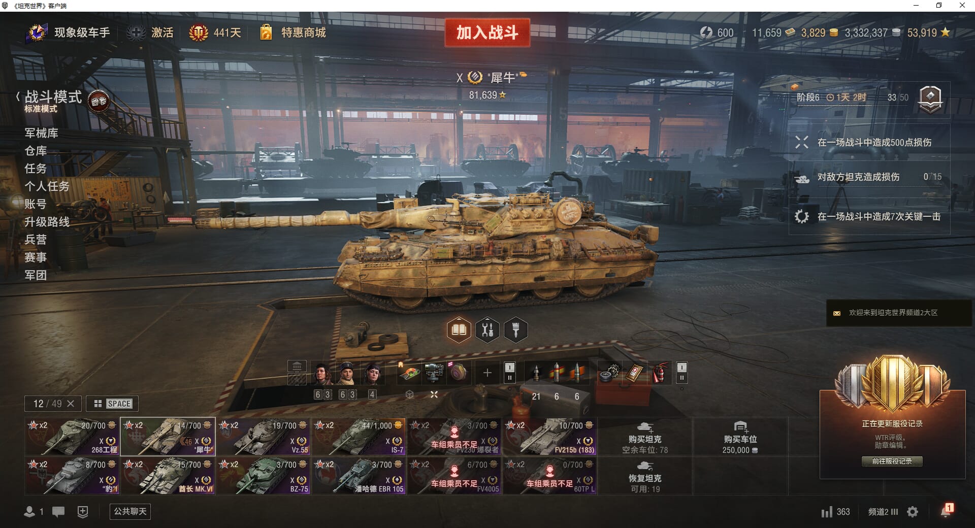 TD1334/无绑定-绝对安全/精品万酋小号/全部坦克45/金币坦克34/10级12/9级11/8级12/10级/酋长MK.VI/268工程/豹I/犀牛/Vz55/BZ-75/IS-7/潘哈德EBR105/FV230爆裂者/FV4005/FV215b183/60TPL/9级/巴顿坦克/4号先进战车/GSOR坦克/8级/天蝎/乘员217/债券11659/金币3829/银币333w/全局53919坦克世界 - 360国服 -