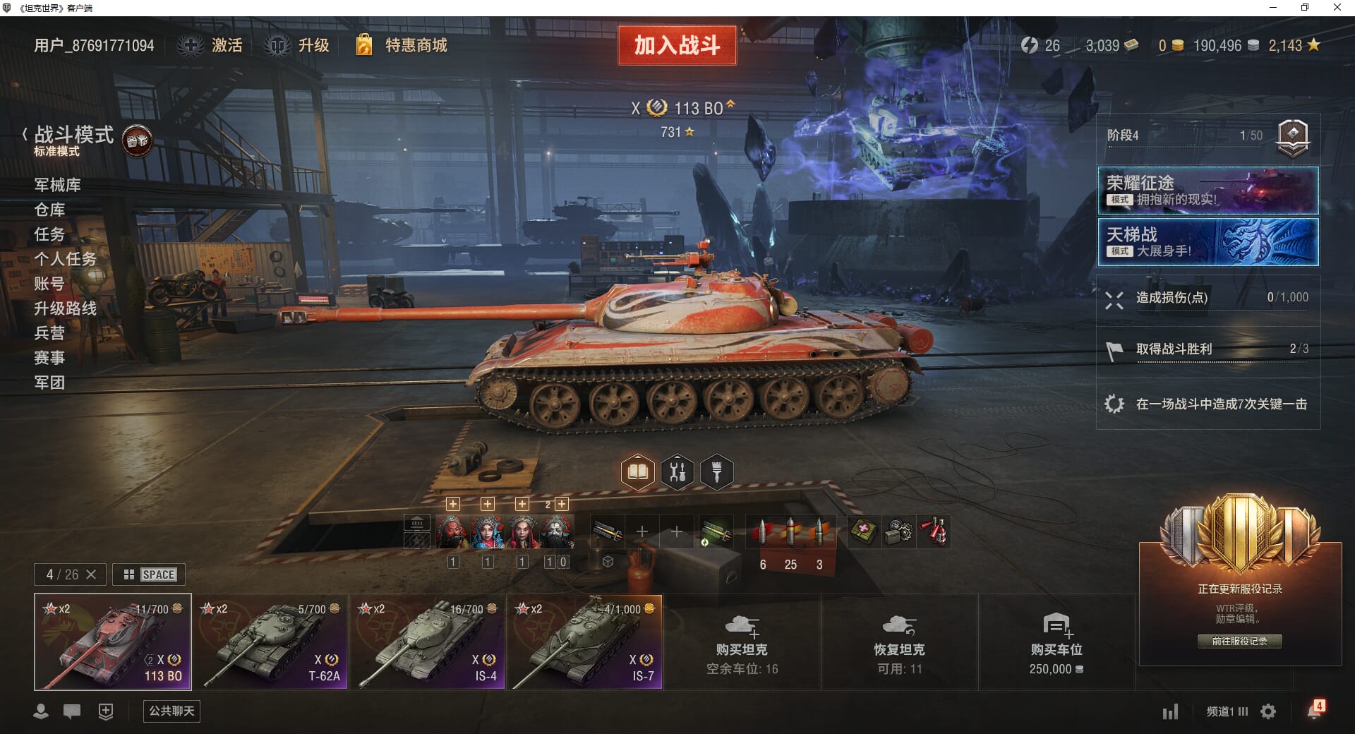TD1295/无绑定-绝对安全/全部坦克23/金币坦克3/10级4/9级3/10级/113BO/T-62A/IS-4/IS-7/9级/257工程/巴顿坦克/GSOR坦克/乘员245/债券3039/金币0/银币19w/全局2143坦克世界 - 360国服 -