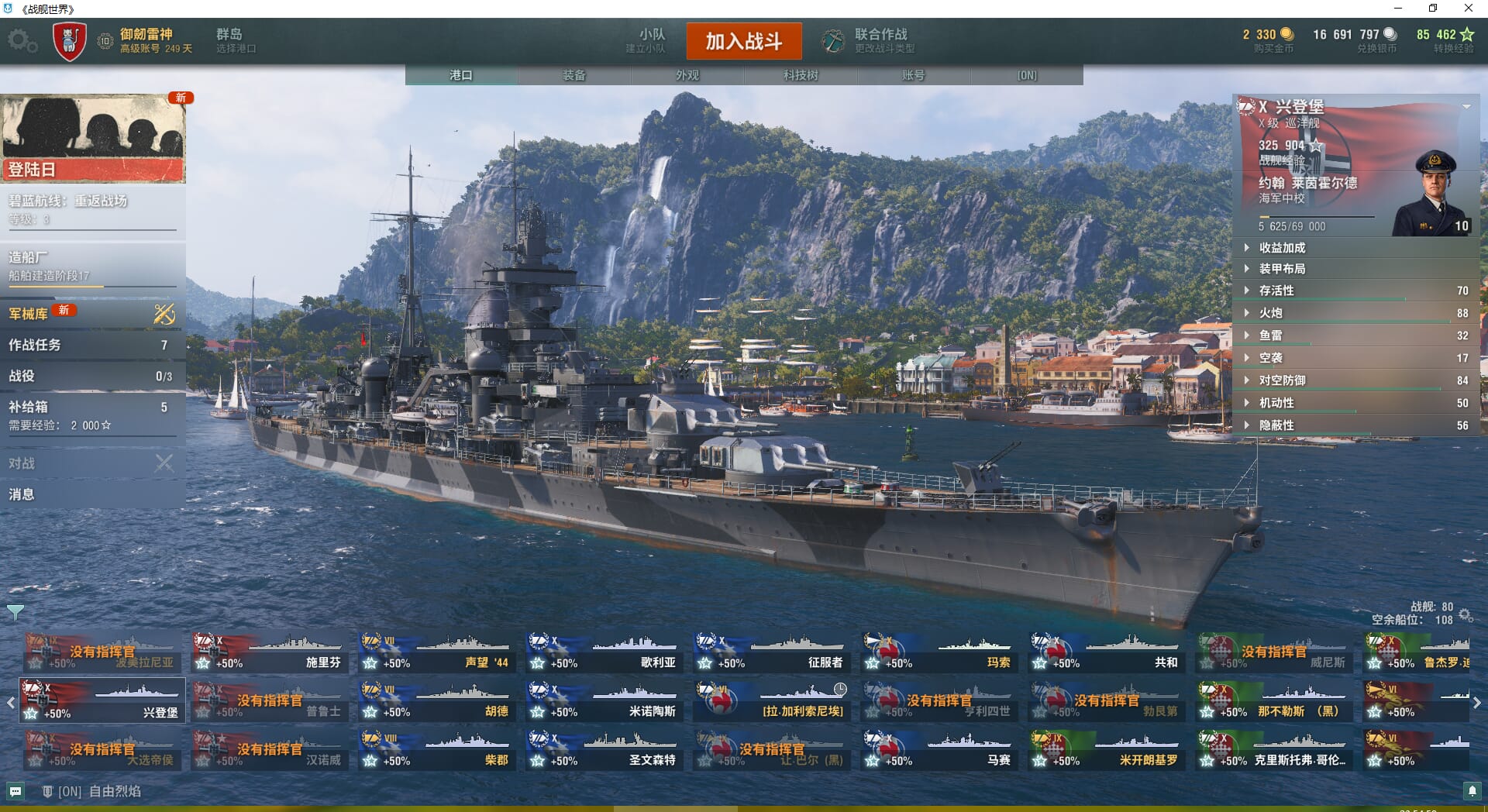 TD1282/无绑定-绝对安全/全部战舰230/10级45/钢船4/梅克伦堡/勃艮第/斯大林格勒/朗纳尔/煤船22/10级/伍斯特/得梅因/塞勒姆/佛蒙特/蒙大拿/俄亥俄/亚历山大涅夫斯基/彼得罗巴甫洛夫斯基/莫斯科/塞瓦斯托波尔/克里姆林/光荣/Z-52/埃尔宾/兴登堡/施里芬/普鲁士/大选帝侯/梅克伦堡/马克斯殷麦曼/歌利亚/圣文森特/征服者/玛索/亨利四世/马赛/共和/勃艮第/阿蒂利奥莱戈洛/威尼斯/那不勒斯黑/克里斯托弗哥伦布/哈兰/朗纳尔/特隆普/自由/阿尔瓦罗德巴赞/煤船/马克斯殷麦曼/大选帝侯/莫斯科/塞勒姆/葵/特隆普/阿尔瓦罗德巴赞/玛索/福利斯特舍曼/埃吉尔/猉/鲯/沙恩霍斯特43/里约热内卢/勇敢/基洛夫/囊安/希尔/马布尔黑德/狐/坎贝尔敦/查尔斯顿/金币1680/银币1235w/经验89489战舰世界 - 360国服 -