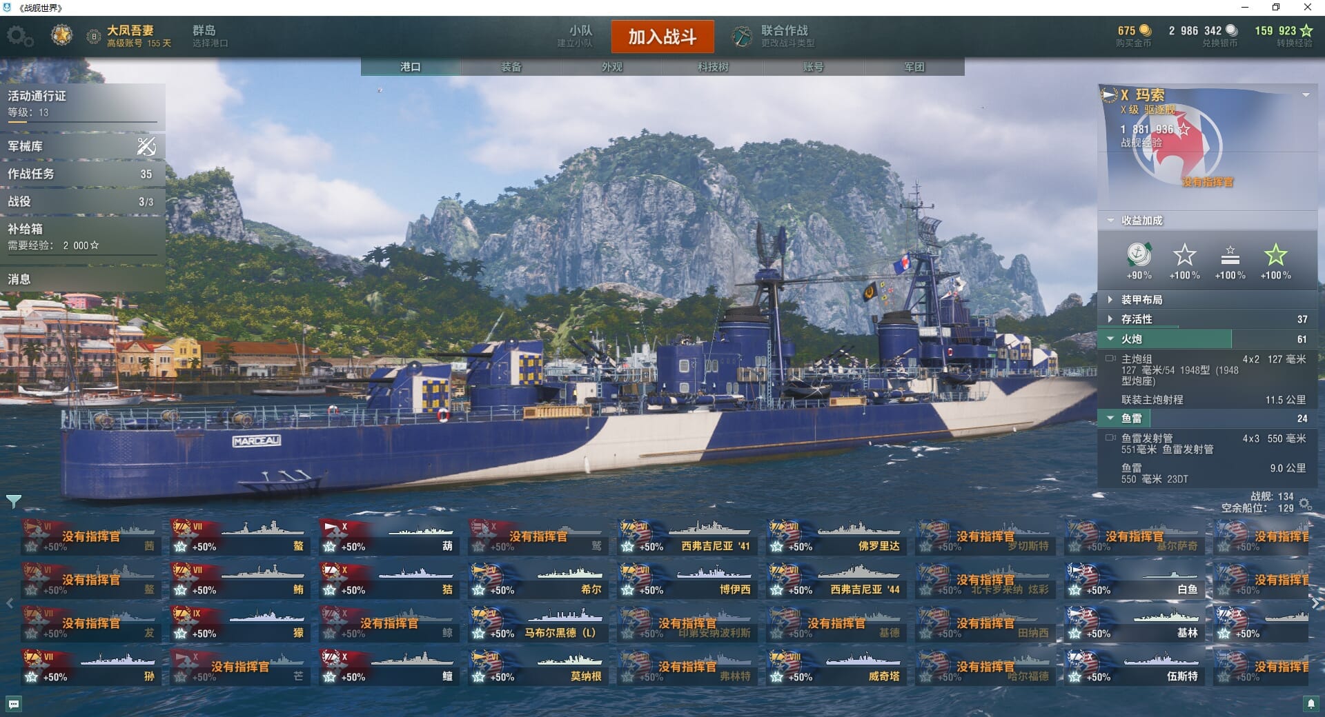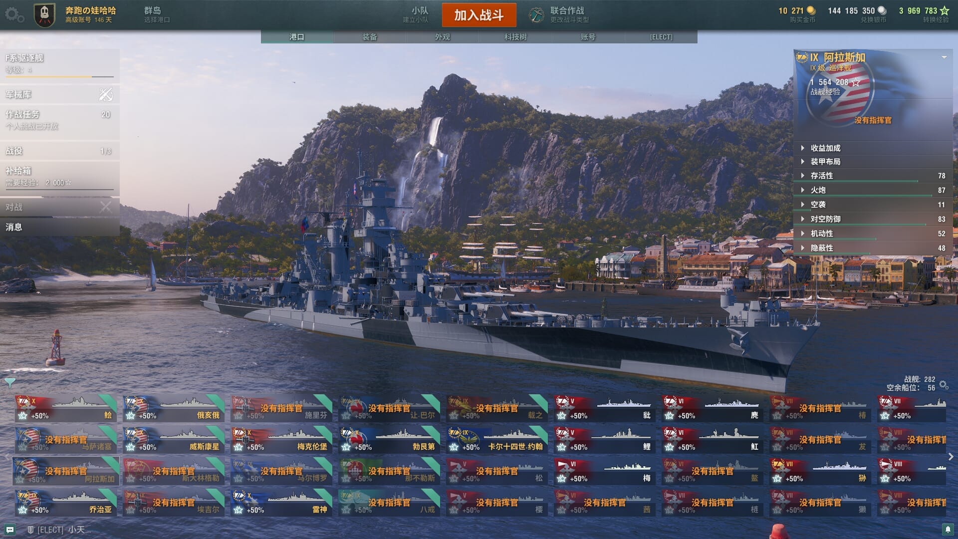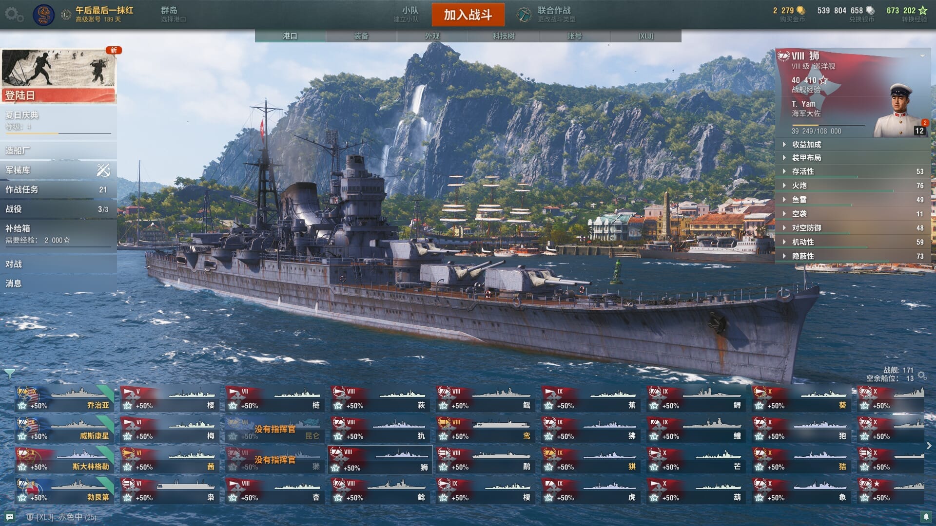 TD1276/无绑定-绝对安全/全部战舰32/10级7/金狮/自由/狍/象/蒙大拿/玛索/越安/金币75/银币2755w/经验40977