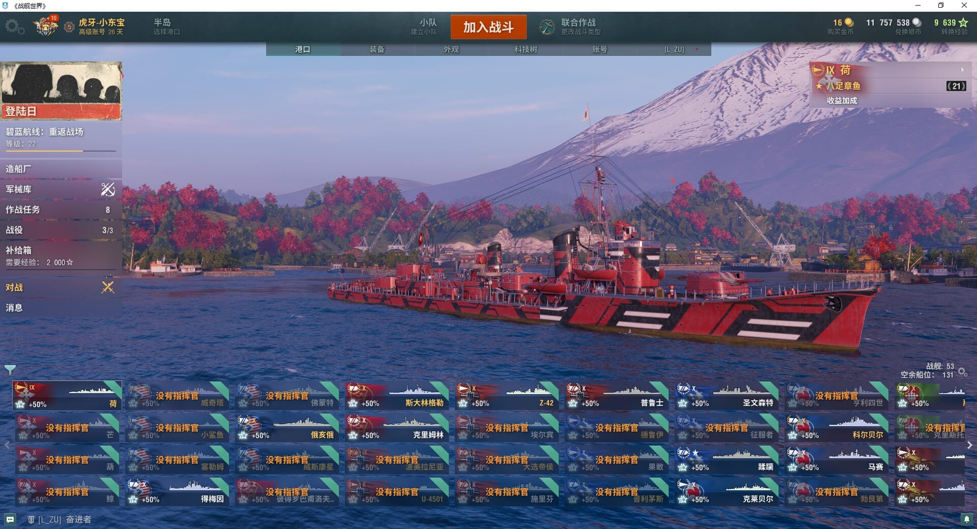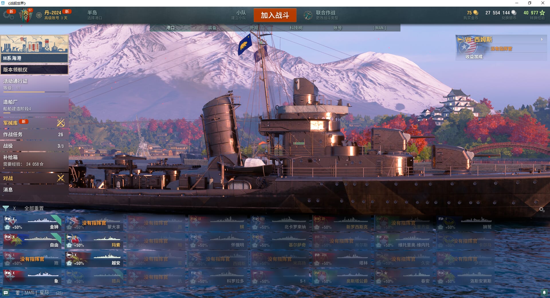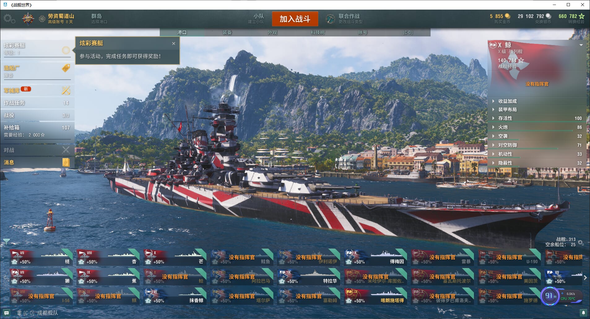 TD1276/无绑定-绝对安全/全部战舰32/10级7/金狮/自由/狍/象/蒙大拿/玛索/越安/金币75/银币2755w/经验40977