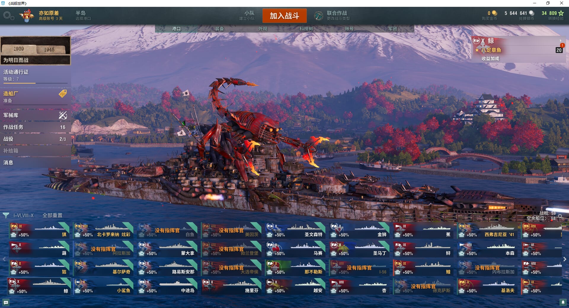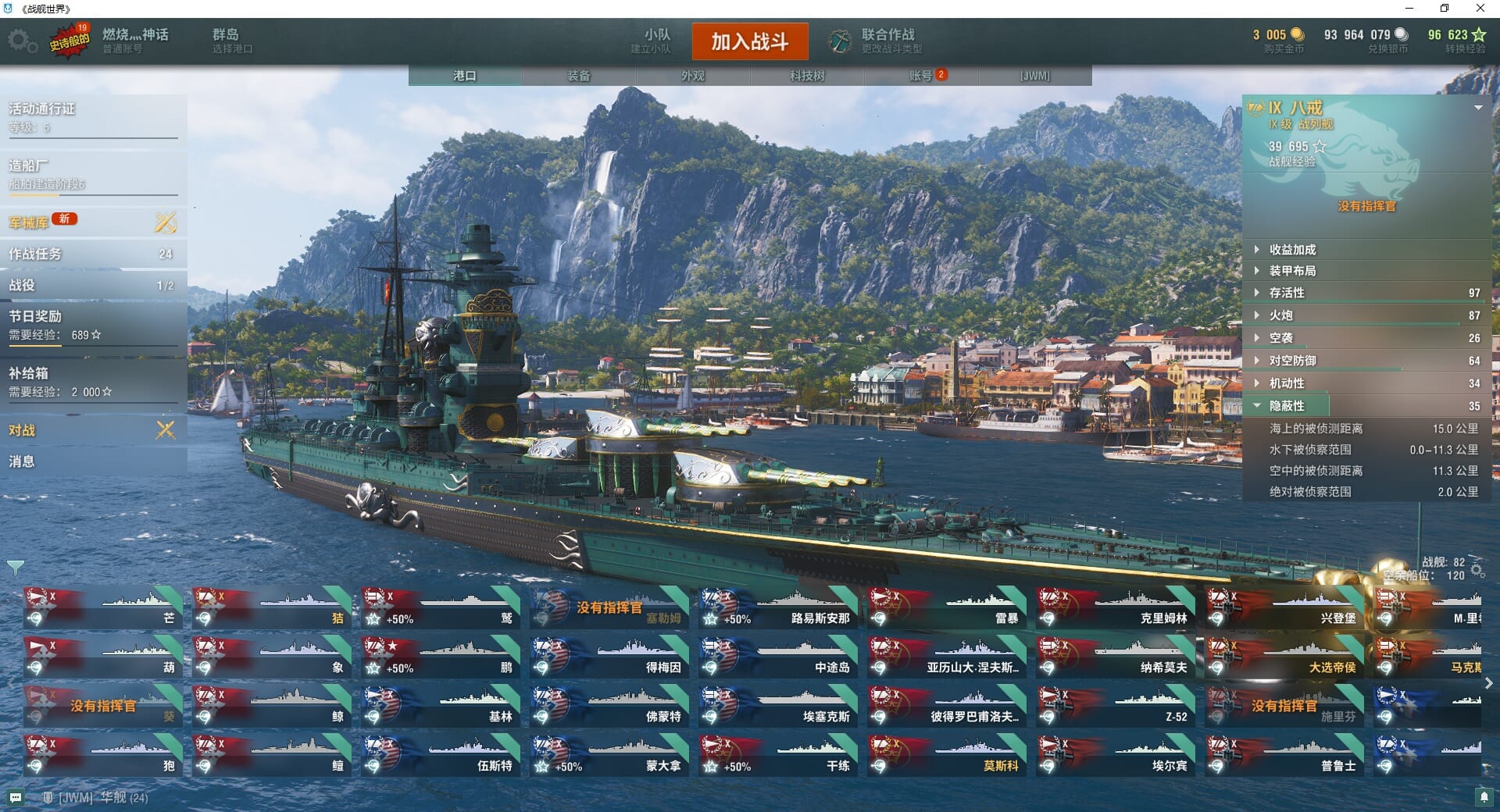 TD1152/无绑定-决对安全/全部战舰59/钢船1/小鲨鱼/煤船6/大选帝侯/那不勒斯/狤/猉/基尔萨奇/基洛夫/10级16/葫/鲸/白鱼/蒙大拿/路易斯安那/中途岛/施里芬/圣文森特/马赛/越安/金狮/圣马丁/金币0/银币564w/经验34809