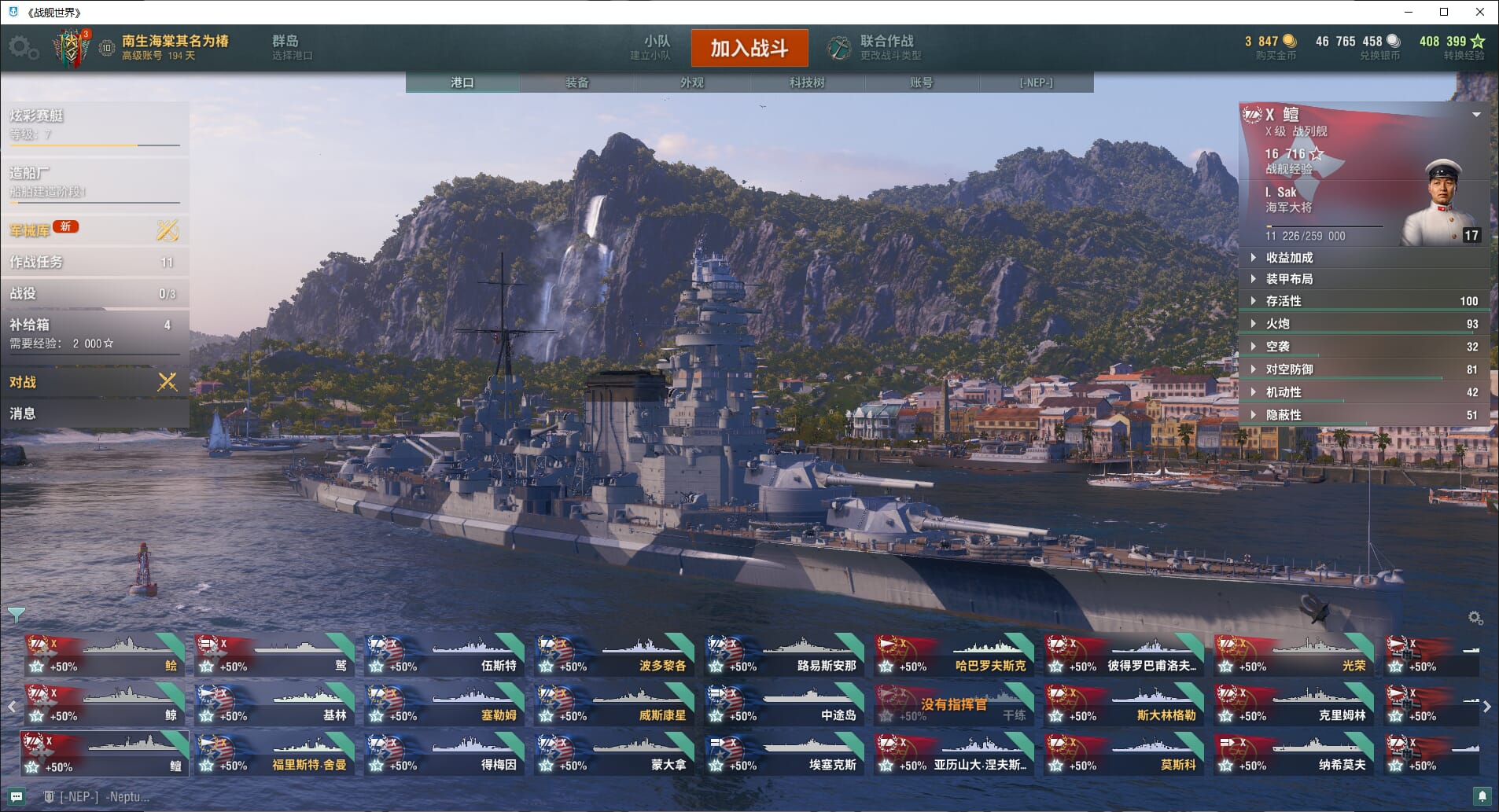 TE748/无绑定-决对安全/战舰105/超级战舰7/10级44/9级6/8级13/钢船2/煤船14/指挥官7/岛风/吉野/大和/白龙/巴劳鱵/福雷斯特·谢尔曼/奥斯汀/得梅因/波多黎各/佛蒙特/罗德岛/蒙大拿/路易斯安那/埃塞克斯/哈巴罗夫斯克/亚历山大·涅夫斯/波德罗巴浦洛夫/莫斯科/光荣/克里姆林/纳希莫夫/普鲁士/里希特霍芬/马克斯·殷麦曼/德鲁伊/果敢/哥利亚/圣文森特/大胆/马耳他/克莱贝尔/玛索/亨利四世/科尔伯特/马赛/共和国/勃垦第/那不勒斯/克里斯托弗·哥伦/岳阳/旅顺/仁川/哈兰/格但斯克/朝潮B/金币1050/银币7000w/4.6w经验/细节看图