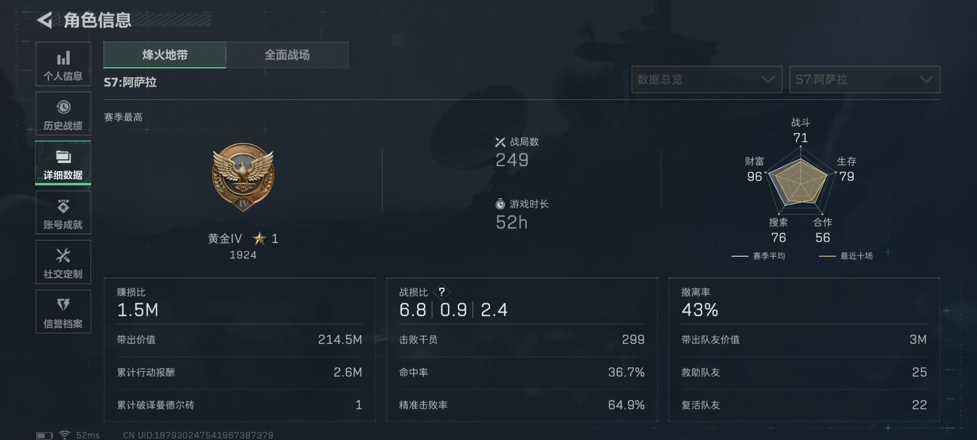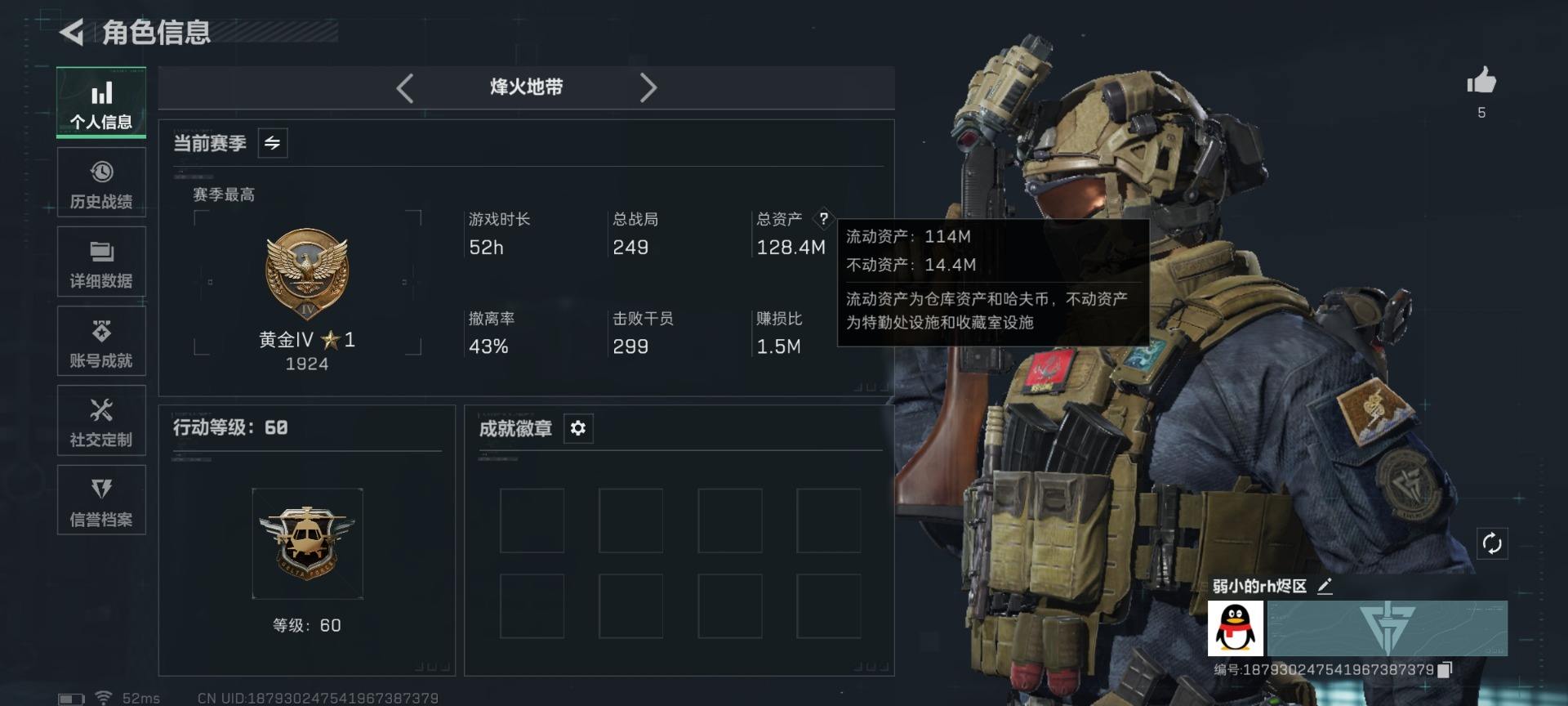 44m总资产-40490k哈伏币-36烽火等级-青铜-1战场等级-无军衔