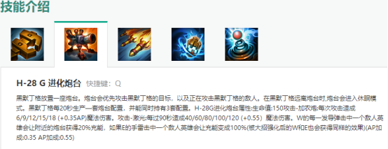 Q技能是放置一座炮台,炮台会优先攻击大发明家攻击的目标,以及正在攻击大头的敌人。当大头远离炮台时,炮台会进入休眠状态。