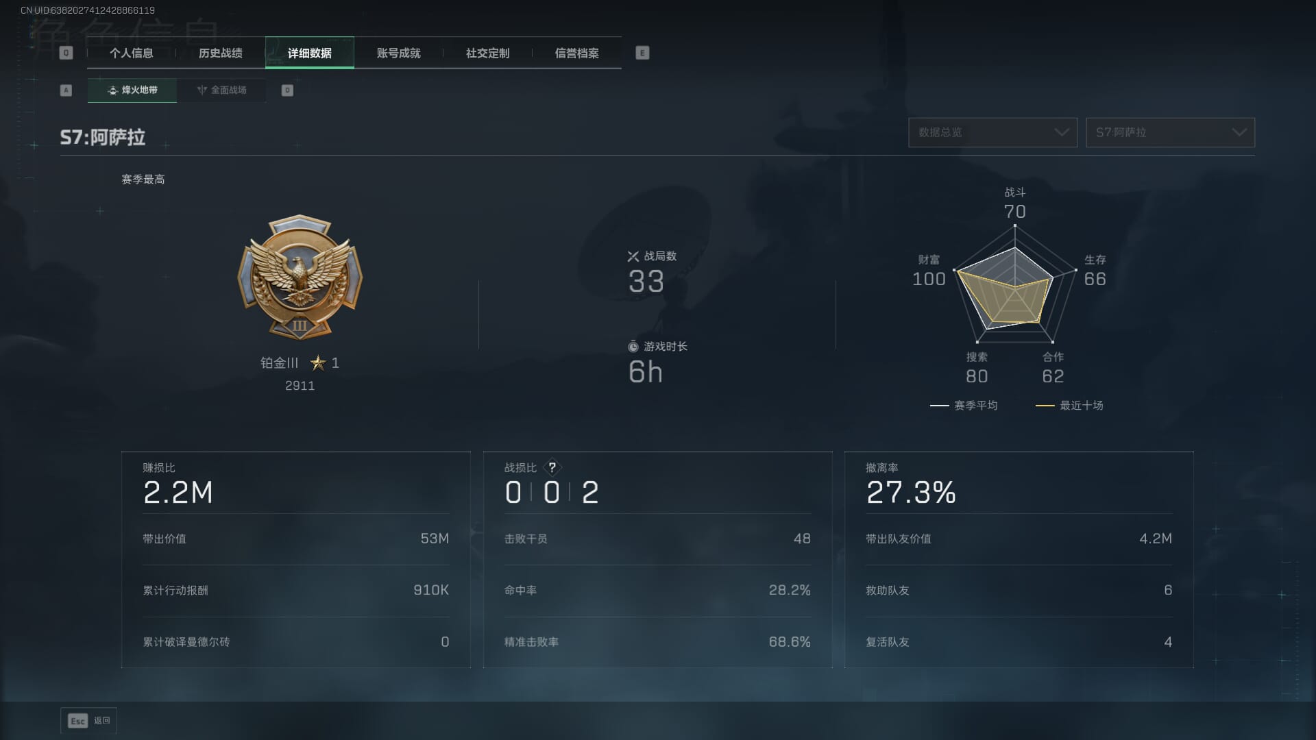 44m总资产-40490k哈伏币-36烽火等级-青铜-1战场等级-无军衔