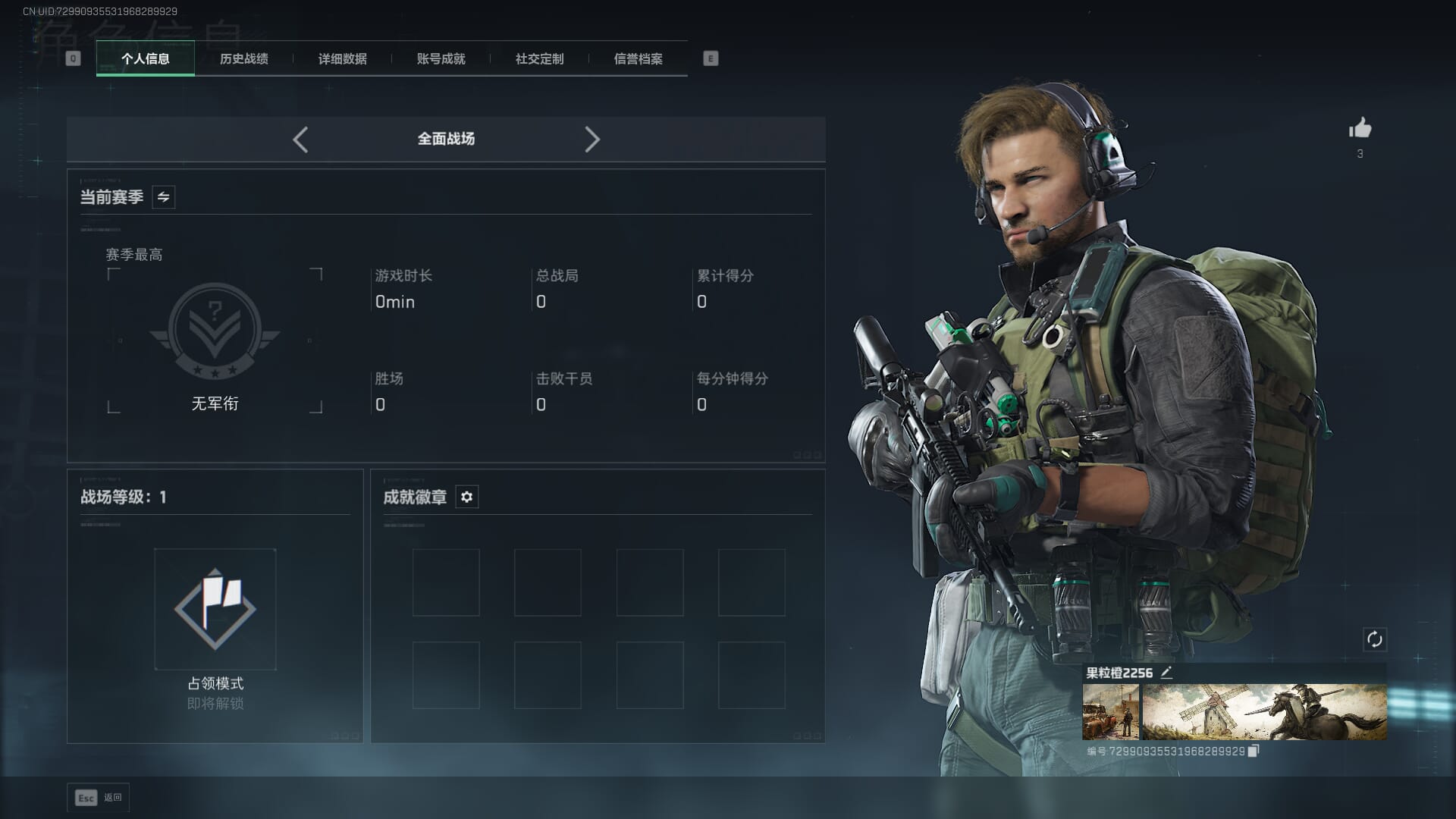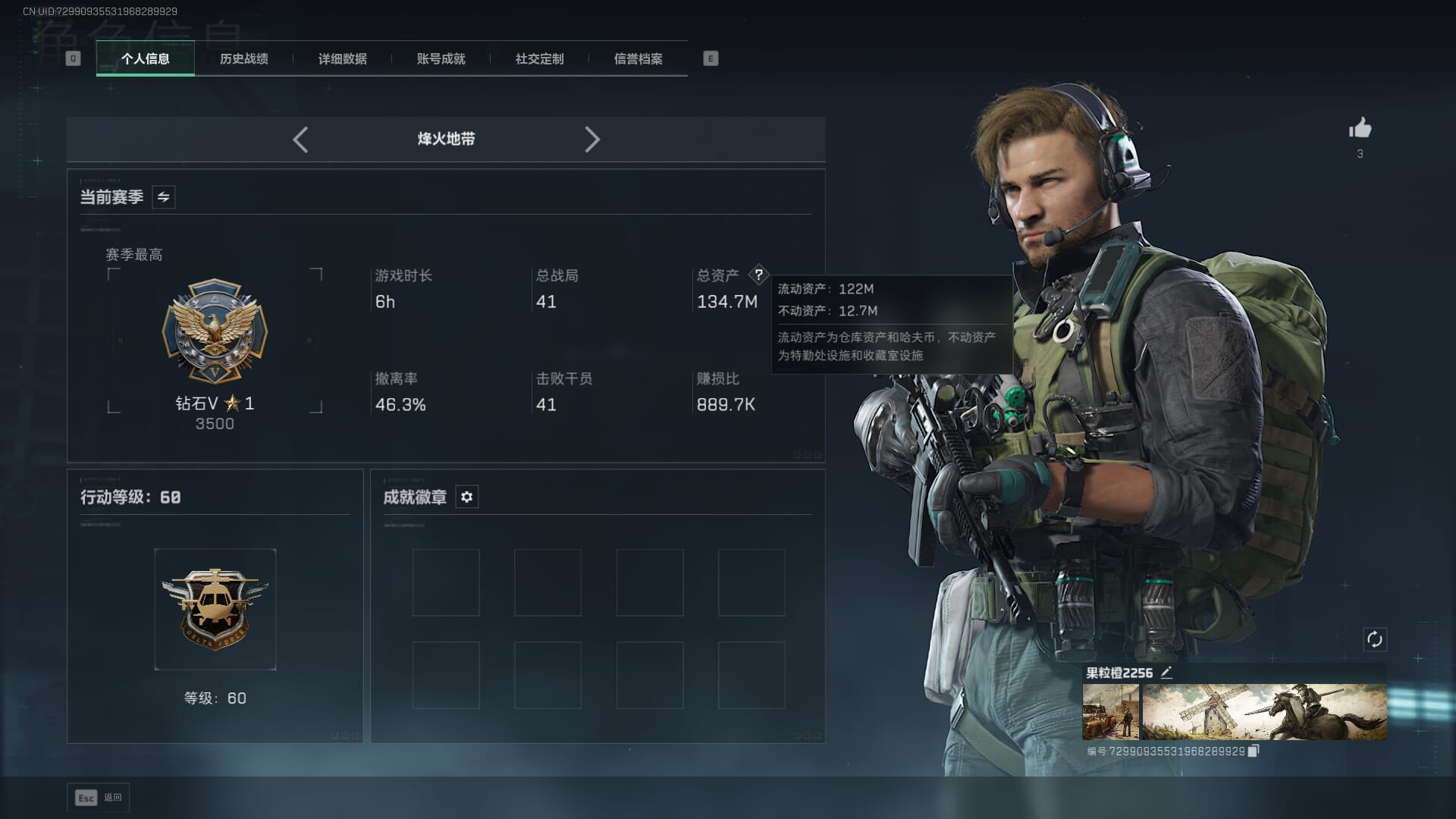 44m总资产-40490k哈伏币-36烽火等级-青铜-1战场等级-无军衔