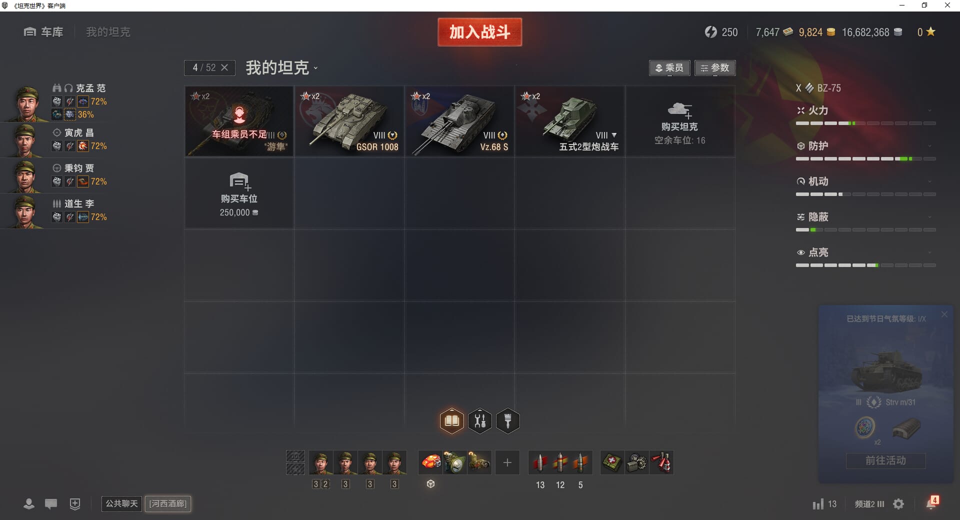 TD1238/无绑定-绝对安全/全部坦克14/金币坦克12/10级2/9级1/10级/BZ-75/FV215b/9级/GSOR坦克/乘员112/债券16793/金币3176/银币1494w/全局16088