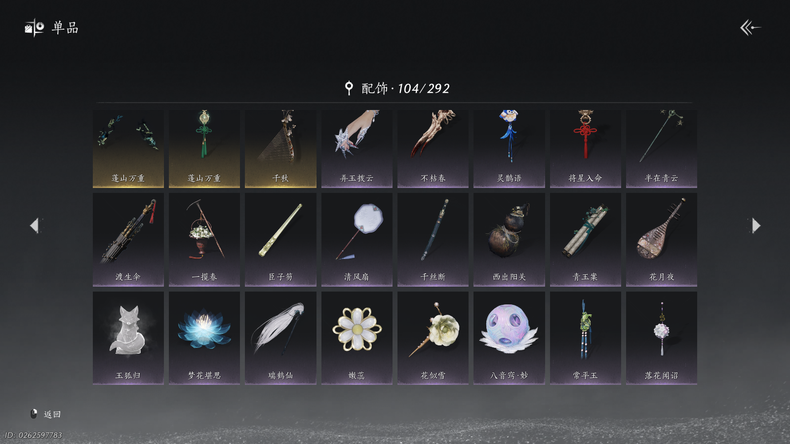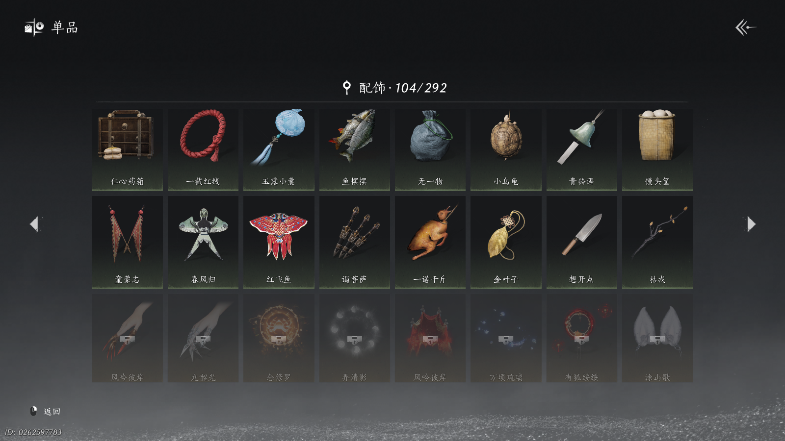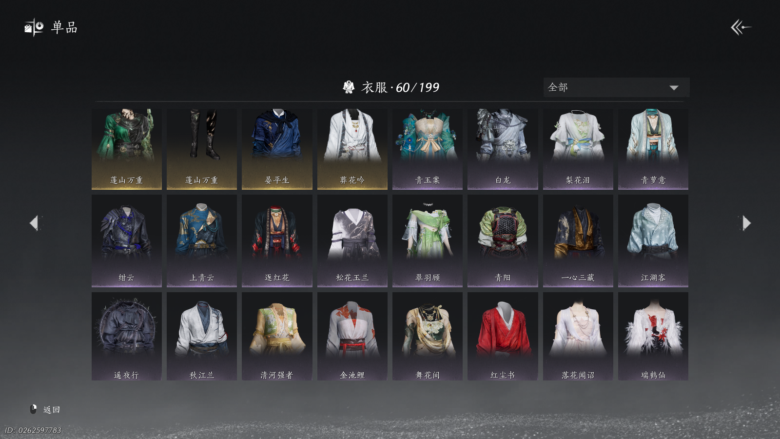 商品描述:XY-076654835 风华值40073 武林造诣(鹅)36970 已用八音窍数量6 未用八音窍数量0 等级100 角色性别【文本】女 【绝境】 【无换绑CD】 【不可换绑】 【未注册】 【不支持人脸包赔】 【女】 【是】 【是】 稀有套装3 稀有发型2 稀有武器外观2 稀有武学奇术1 套装28 武器外观11 武学奇术3 坐骑4 其他武器外观11 稀有套装:葬花吟,晏平生,瑞鹤仙; 稀有发型:锦瑟华年,栖彤霞; 稀有武器外观:藏音·凤凰于飞,藏音·千古断云; 稀有武学奇术:万剑归宗; 套装:云中锦书,青玉案,鹊踏枝,剑影藏心,红尘书,芳时歇,午风清,南风熏,逐红花,遥夜行,江湖客,雨停荷,舞花间,松花玉兰,上青云,白龙,射虎南山,青阳,金池鲤,瑞鹤仙,翠羽顾,落花闻诏,梨花泪,清河强者,驰走西风,木棍子,锦瑟华年,百花应诏; 武器外观:大满贯,月中诗,出竹意,木棍,葱葱那年,飒陌耶,霜枫横,霜枫寒,霜枫眠,霜枫尽,霜枫舞; 武学奇术:风戏万古,墨染尘,御帚飞鸡; 坐骑:飞毛腿,白义,琼林客,飒露子; 其他武器外观:大满贯,月中诗,粽不粽,出竹意,木棍,葱葱那年,霜枫舞,霜枫眠,霜枫横,霜枫寒,霜枫尽;