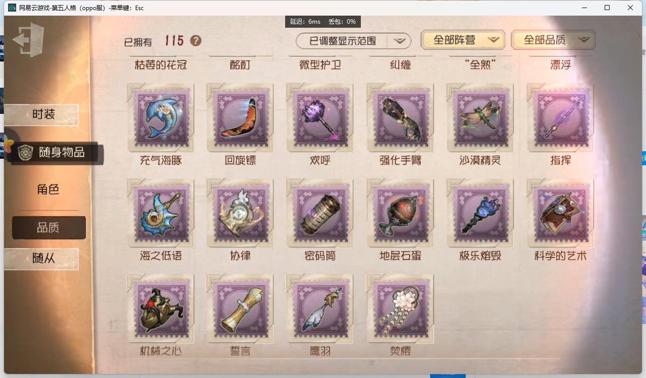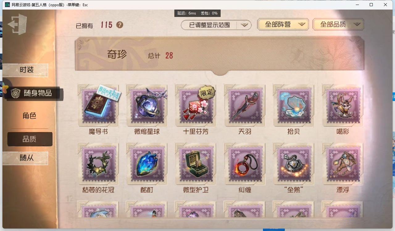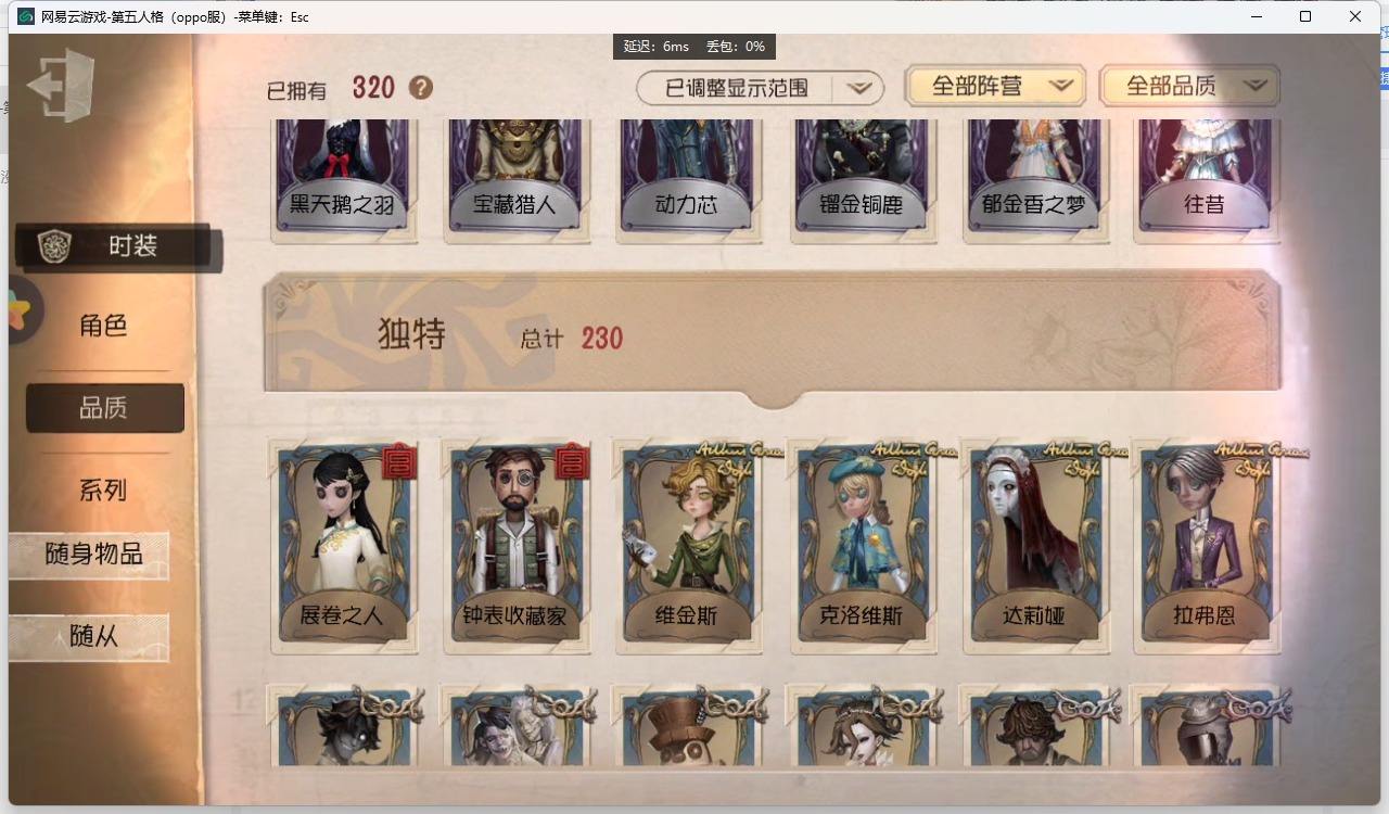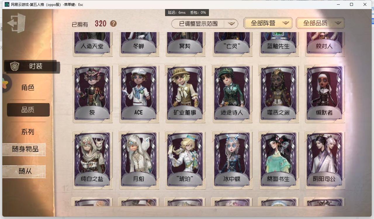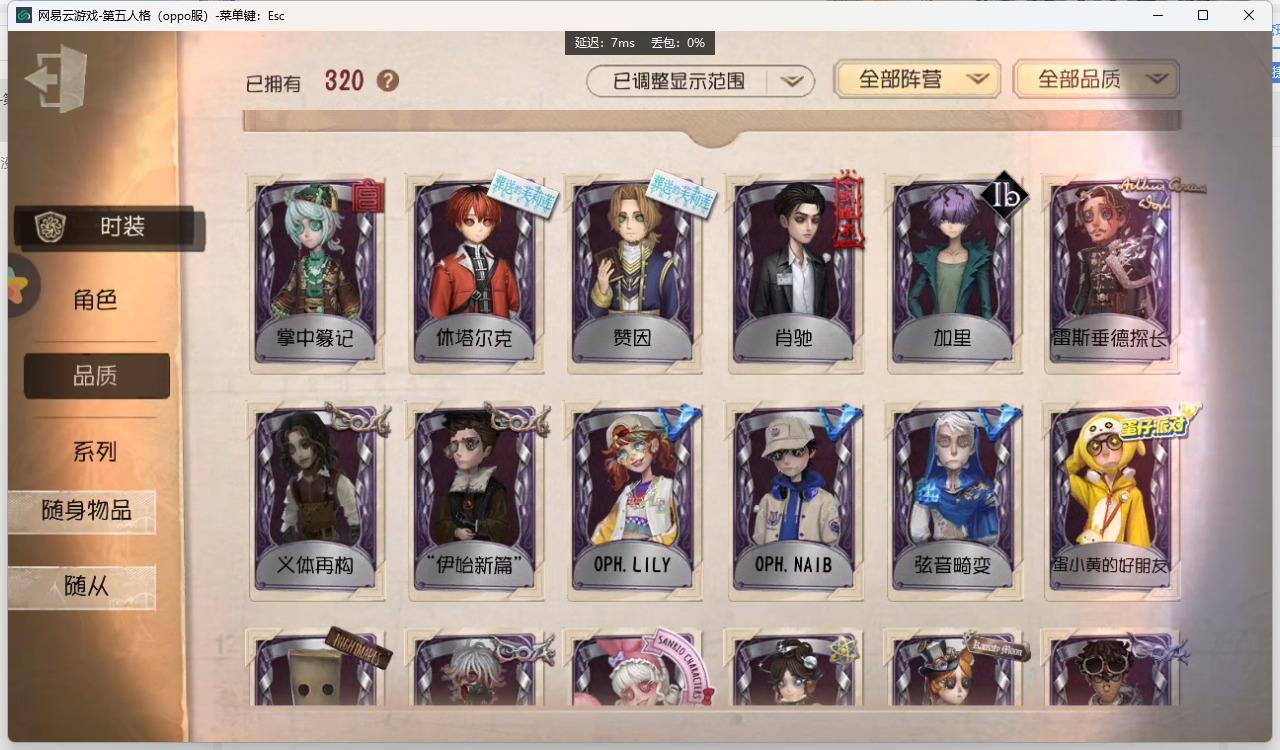 商品描述:[14320148]OPPO-非账号转移 手机账号 320时装 6金皮 84紫皮 18随从 115随身物品 【时装】:园丁-源自星辰,勘探员-盖提亚之遗,心理学家-神圣阿斯莫,爱哭鬼-摩诺,渔女-破魔之刃,邮差-“亡灵”,渔女-迷迭香,“囚徒”-天海兰太郎,病患-稀缺病案,“杰克”-加里,拉拉队员-OPH.LILY,小说家-福尔摩斯,大副-雷斯垂德探长,雕刻家-善忘的海马体,歌剧演员-拂晓女士,小说家-肖驰,作曲家-暮影,画家-掌中篆记,守墓人-冥契 ,病患-休塔尔克,冒险家-赞因,小提琴家-人造天堂,医生-司药,幸运儿-蛋小黄的好朋友,佣兵-OPH.NAIB,拉拉队员-奇趣美乐蒂,勘探员-盛夏飞盘,哭泣小丑-灵蛇,调酒师-逐浪的玫瑰,渔女-鬼脸天蛾,木偶师-义体再构,小说家-“伊始新篇”,调酒师-校对人,画家-多色印刷,击球手-迫降专家,空军-寒香舞,昆虫学者-动植物学教授,雕刻家-“玛利亚”,画家-长生,画家-江户川乱步,红蝶-竹华,玩具商-藏,玩具商-纸翼小姐,“小女孩”-年岁,前锋-冬,“囚徒”-冬蝉