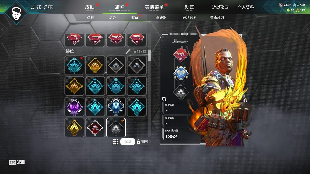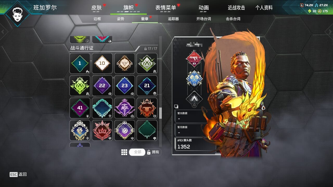 GK6682/【ALGS参赛者徽章】11传/3威望/地平线重力深渊/艾许最强连结/恶灵希望黎明/密客隐秘之刃/亡灵死亡曲线/班加罗尔冷钢/动力小子蝴蝶刀/探路者拳击手套/寻血猎犬渡鸦之咬/恶灵希望的黄昏/APEX蔓延/2级/APEX虚空转移/3级/APEX猎手/3级/718金皮/【排位】3大师/7钻石徽章/9/12/13/15/16/20/24赛季满通/22/23/25下赛季满【枪皮】