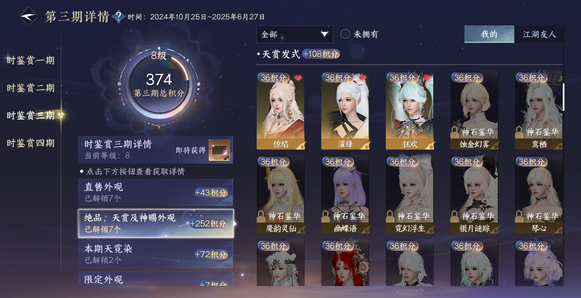 商品描述:XY-076642832 【已用天赏石21】天霓染1,副本外观3,馆藏6级,灵韵4,48660国色,237615衣品,157套时装,装备特技15金,庄园等级11级