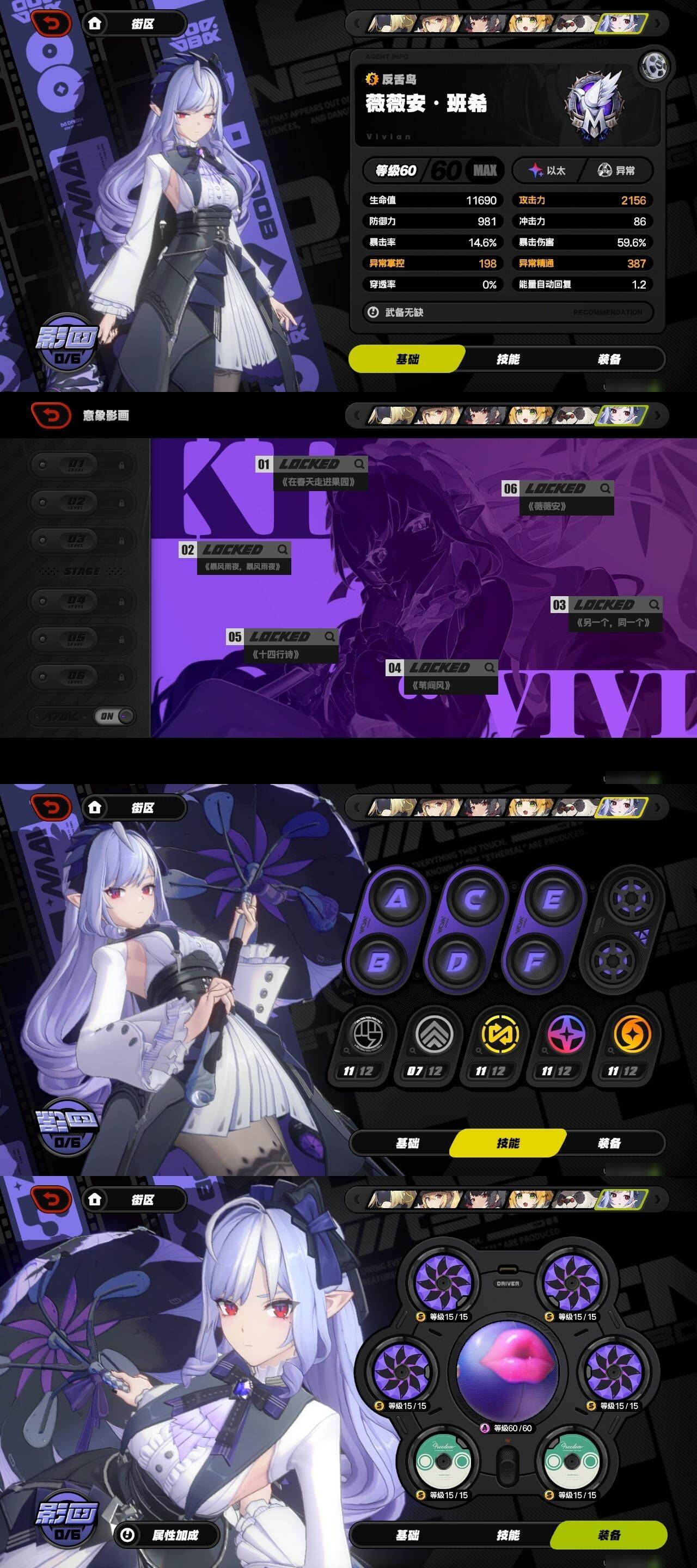 [11352579]【JJ1901】59级,33黄,女主,17个S级代理人:2命雅,1命珂蕾妲,1命莱卡恩,1命丽娜,仪玄,雨果,耀嘉音,伊芙琳,朱鸢,简,悠真,11号,扳机,柏妮思,格莉丝,艾莲,猫又;11个S级音擎:精1防暴者VI型,精1心弦夜响,精1索魂影眸,精1霰落星殿,精1淬锋钳刺,精1千面日陨,精1拘缚者,精1硫磺石*2,精1嵌合编译器,精1啜泣摇篮;8个S级邦布:精5咔嚓仔,精2左轮布,精1共鸣布,精1艾丝弥小姐,精1插头布,精1阿崔巡查,精1鲨牙布,精1艾米莉安;时装:狡黠甜心;菲林底片:0,菲林: