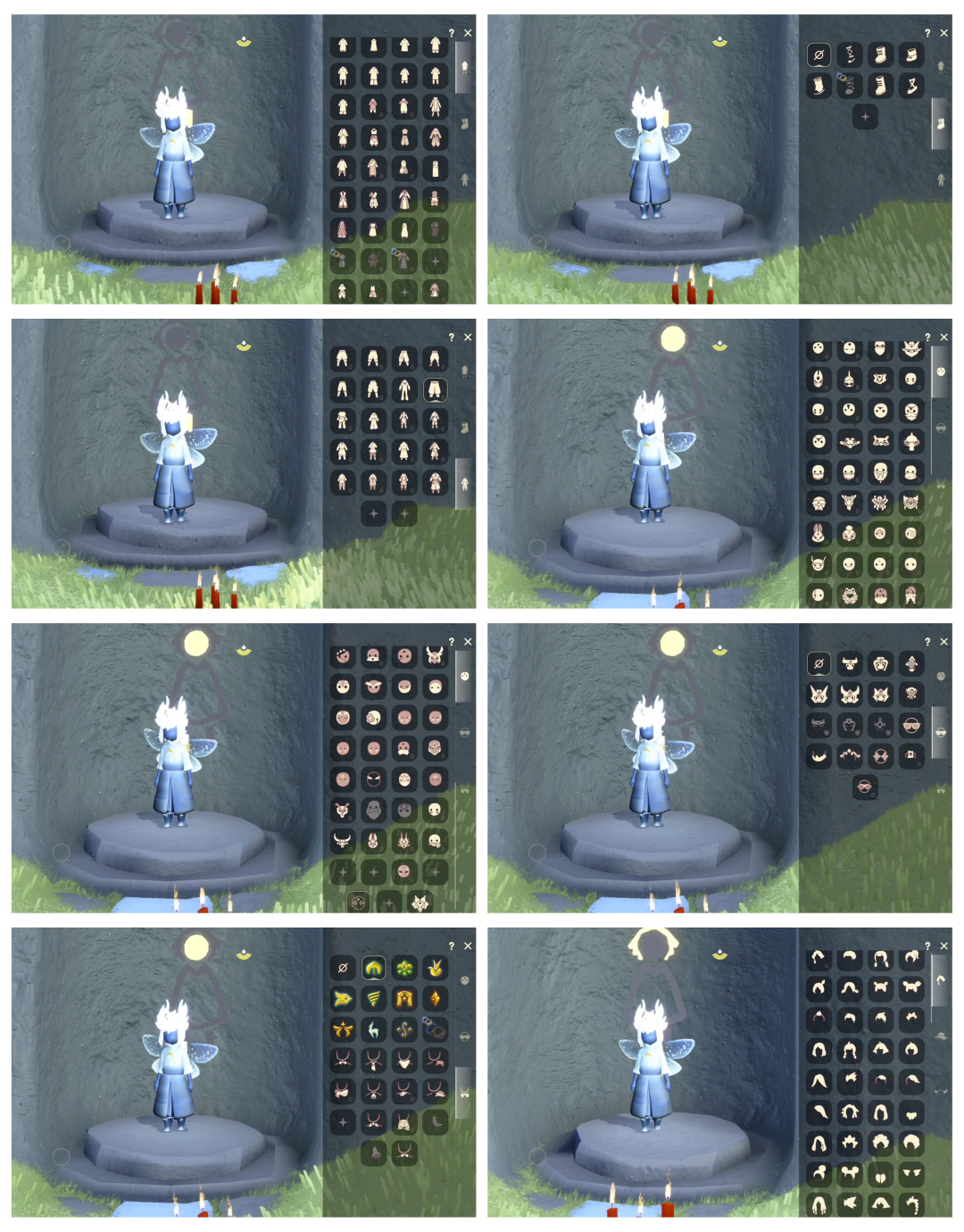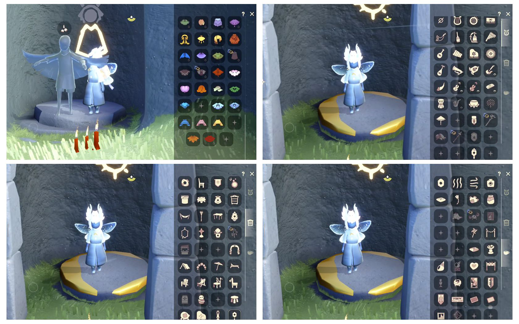 热门复刻:武士裤 老爷爷面具 贴花面具 玫瑰面具 毛绒领子 宴会围巾 蝴蝶结发型 粗辫 正太 高马尾 明制帽 郡主 箬笠 花环 军帽 猫猫头 背带裤 彩虹链带裤 沙滩裤 白棉裤 毛靴裤 搓澡巾 工装裤 连体衣 红耳机 二级白斗 白鸟斗 蝴蝶斗 贝壳斗 绿芽斗 海浪斗 彩虹斗 暗彩斗 相机 女巫桌 """