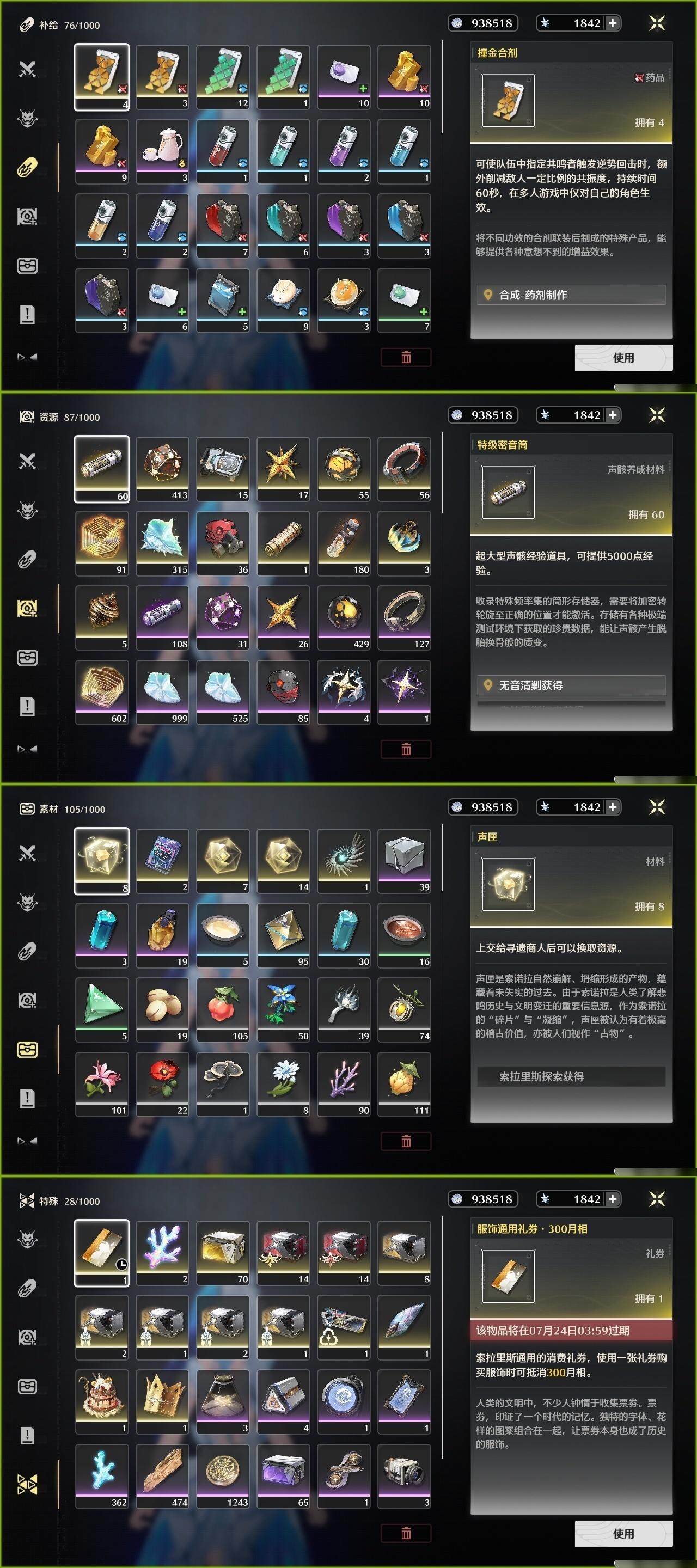商品描述:[11666668]【MM4】【MF3625 今汐散华皮肤 1842星声 0+1守岸人 0+1菲比 0+1吟霖 0+1赞妮 0+1卡提希娅 0+1椿 0+1今汐 0+1忌炎 0+1相里要 洛可可】80级/33黄/男主/13个五星角色/14个五星武器未绑定,卡提希娅,赞妮,菲比,洛可可,椿,守岸人,相里要,今汐,吟霖,忌炎,维里奈,鉴心,卡卡罗,不屈命定之冠,焰光裁定,和光回唱,裁春,星序协响,诸方玄枢,时和岁稔,掣傀之手,苍鳞千嶂,千古洑流,停驻之烟,漪澜浮录,2命鉴心,1命维里奈,1命卡卡罗,0命卡提希娅,0命赞妮,0命菲比,0命洛可可,0命椿,0命守岸人,0命相里要,0命今汐,0命吟霖,0命忌炎,精2千古洑流,精1不屈命定之冠,精1焰光裁定,精1和光回唱,精1裁春,精1星序协响,精1诸方玄枢,精1时和岁稔,精1掣傀之手,精1苍鳞千嶂,精1千古洑流,精1停驻之烟,精1漪澜浮录