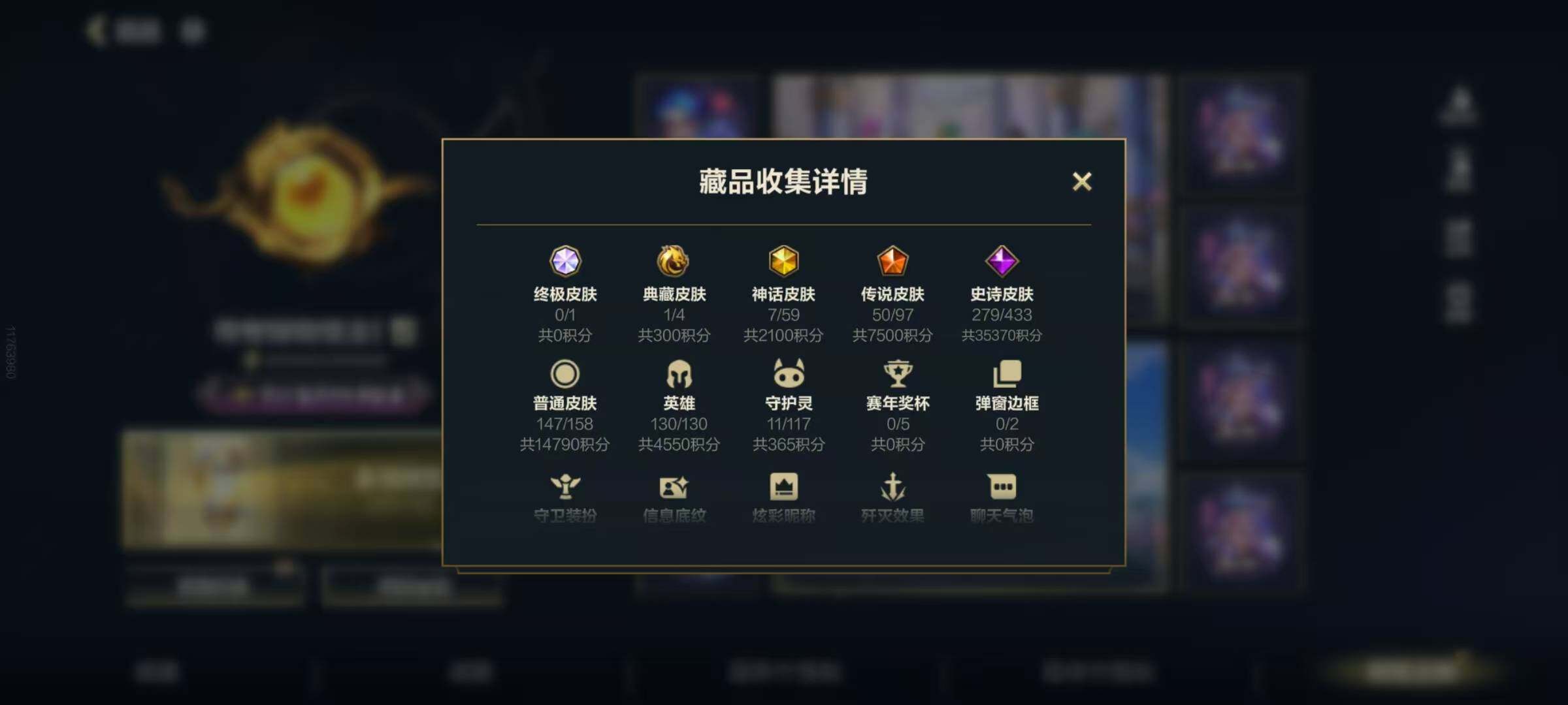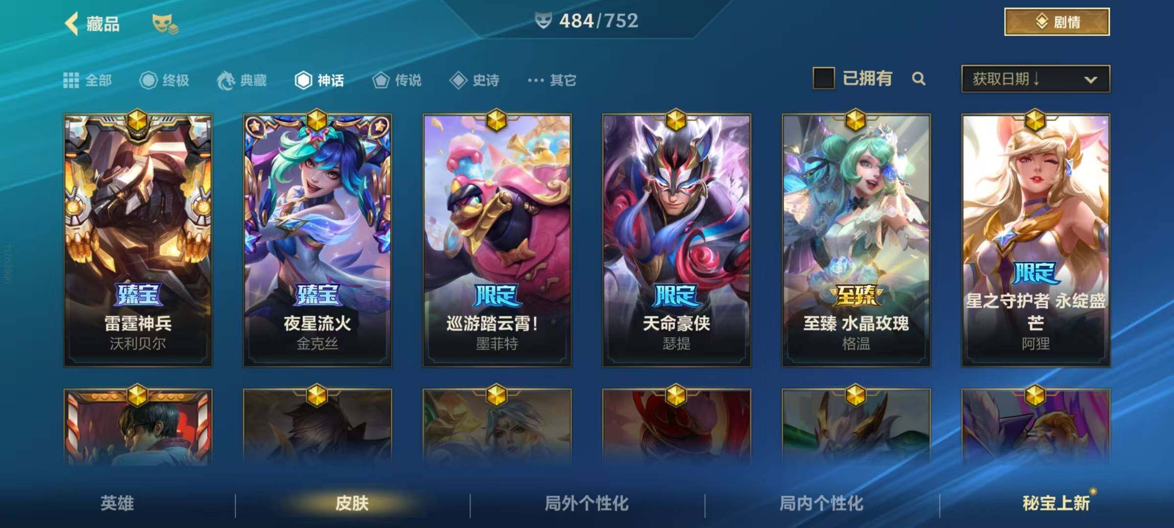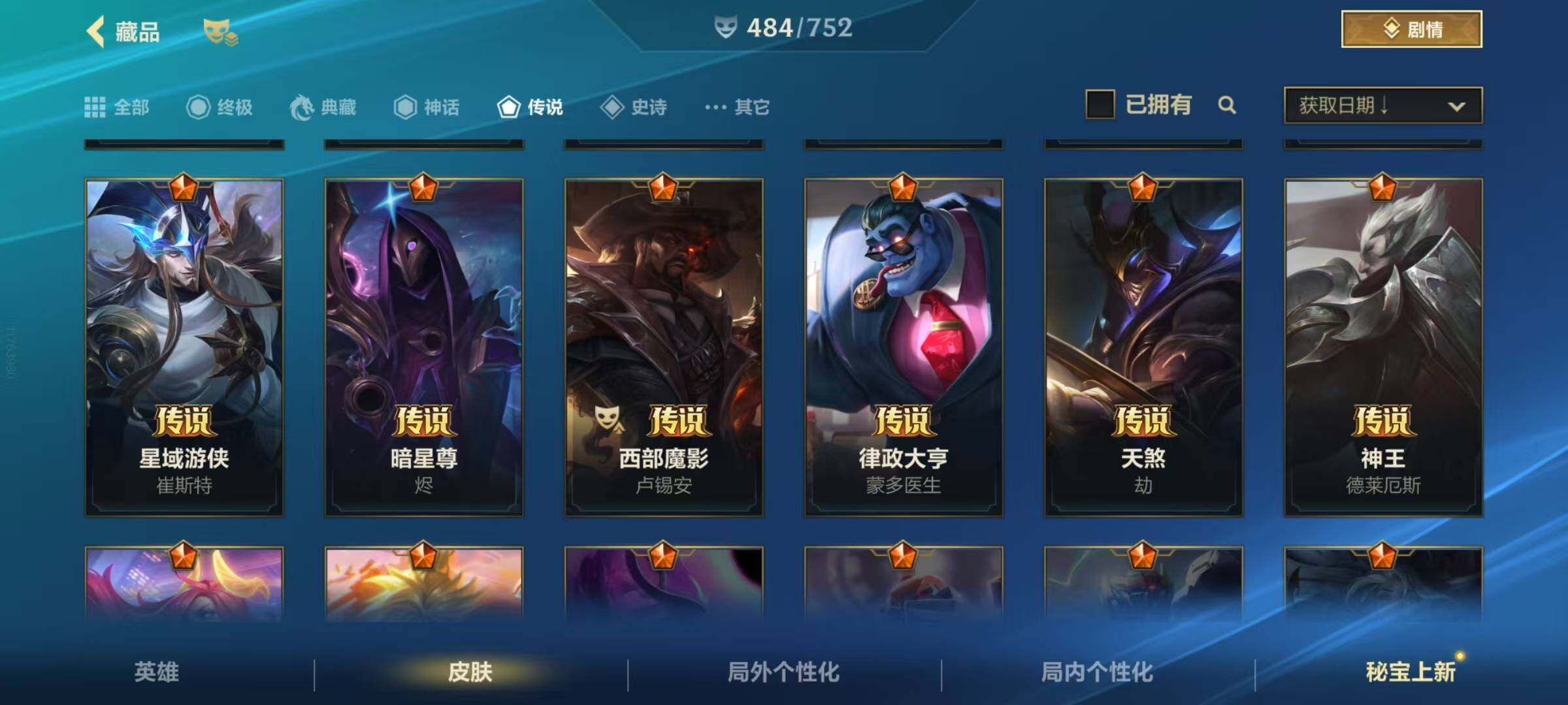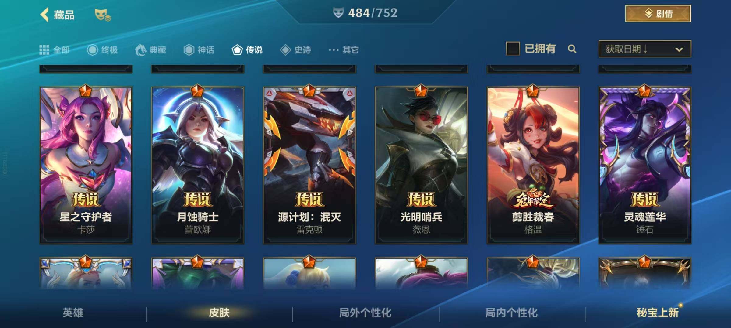 【LSC83】130英雄/484皮肤/1典藏/7神话/50传说/279史诗/超凡大师/超武乾坤:孤拳 瑟提/夜星流火 金克丝/星之守护者 永绽盛芒 阿狸/至臻 水晶玫瑰 格温/黎明使者 破晓之殇 佛耶戈/龙的传人 李青/巡游踏云霄! 墨菲特/地底世界 崔斯特/广寒仙子 嫦娥 黛安娜/创星之灵 璐璐/斩星魔剑 易/养蜂人 辛吉德/鸡里奥 加里奥/钢铁军团 拉克丝/赵云 子龙 赵信/烈焰美人 薇恩/虎痴之拳 蔚/闭月之颜 貂蝉 卡特琳娜/张辽 文远 盖伦/水晶玫瑰 嘉文四世/水晶玫瑰 拉克丝/水晶玫瑰 伊泽瑞尔/水晶玫瑰 阿卡丽/水晶玫瑰 永恩/水晶玫瑰 蔚/水晶玫瑰 娑娜/关羽 云长 泰达米尔
