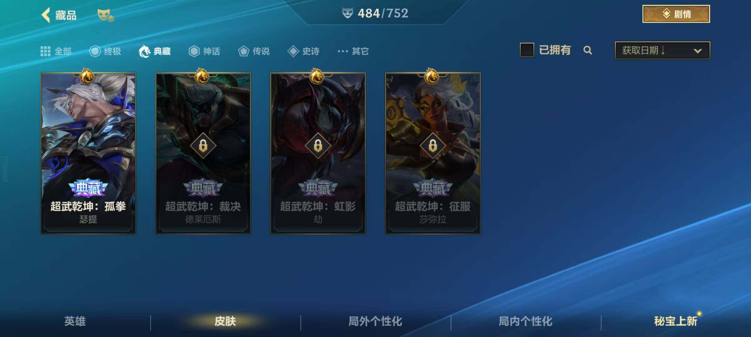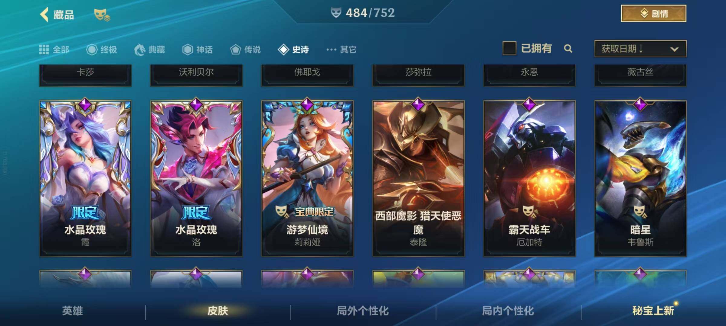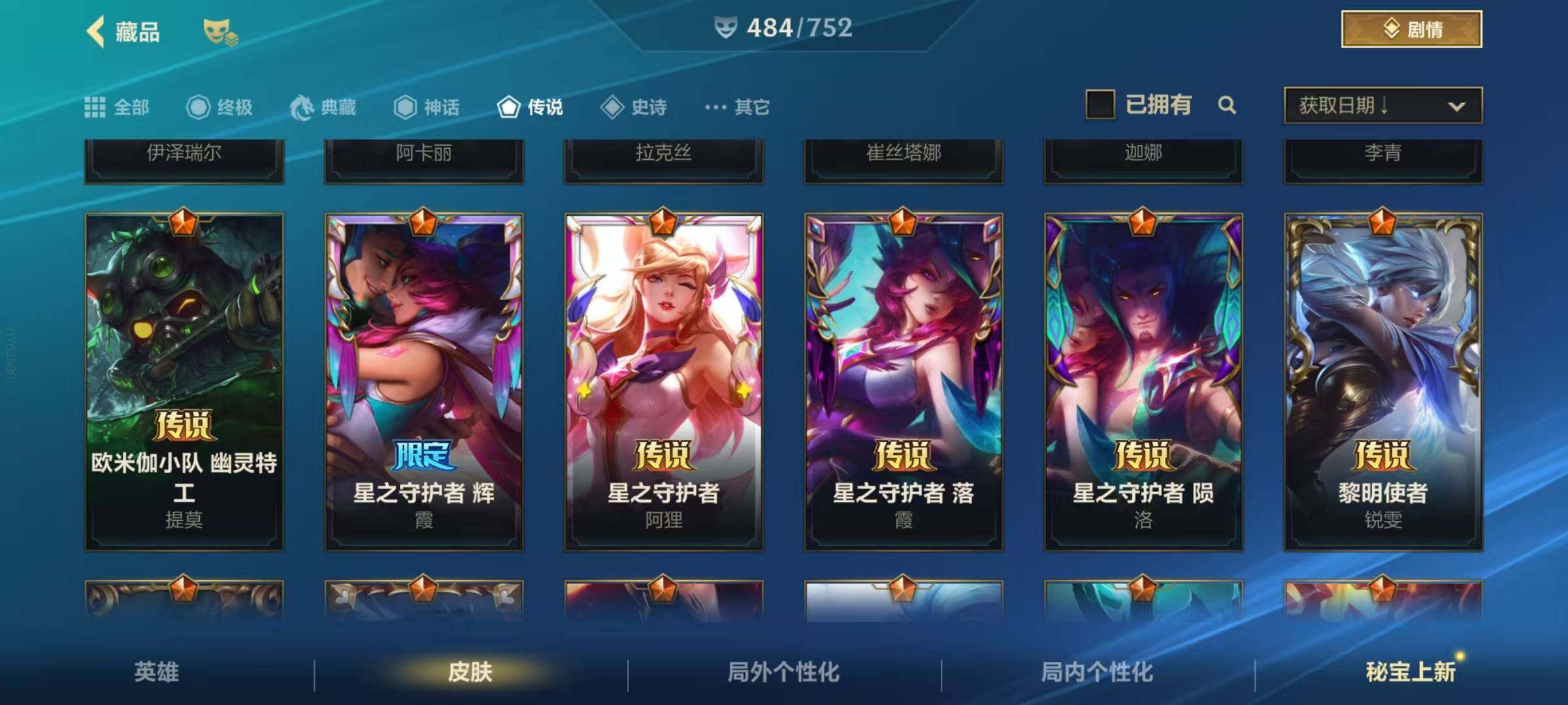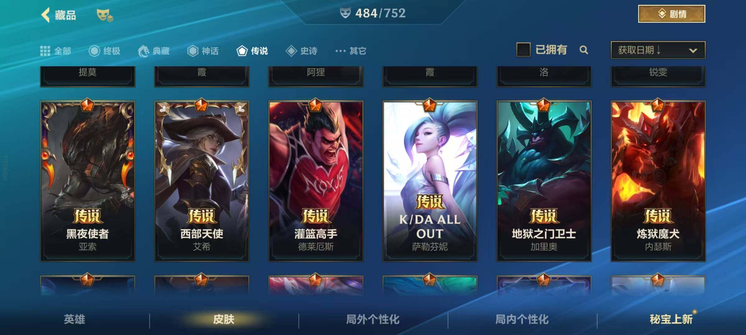 【LSC83】130英雄/484皮肤/1典藏/7神话/50传说/279史诗/超凡大师/超武乾坤:孤拳 瑟提/夜星流火 金克丝/星之守护者 永绽盛芒 阿狸/至臻 水晶玫瑰 格温/黎明使者 破晓之殇 佛耶戈/龙的传人 李青/巡游踏云霄! 墨菲特/地底世界 崔斯特/广寒仙子 嫦娥 黛安娜/创星之灵 璐璐/斩星魔剑 易/养蜂人 辛吉德/鸡里奥 加里奥/钢铁军团 拉克丝/赵云 子龙 赵信/烈焰美人 薇恩/虎痴之拳 蔚/闭月之颜 貂蝉 卡特琳娜/张辽 文远 盖伦/水晶玫瑰 嘉文四世/水晶玫瑰 拉克丝/水晶玫瑰 伊泽瑞尔/水晶玫瑰 阿卡丽/水晶玫瑰 永恩/水晶玫瑰 蔚/水晶玫瑰 娑娜/关羽 云长 泰达米尔