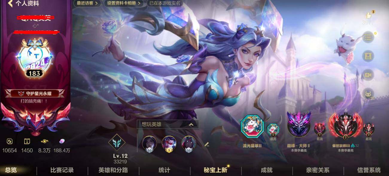 [12058105]9传说 62史诗 145皮肤 可二次 可修改实名 优质装备:暗星尊,福牛守护者女枪,黑夜使者亚索,神王盖伦,天煞劫,星域游侠卡牌,源计划:联合,龙的传人,龙的传人,斗魂觉醒 莎弥拉 段位:大师 限定皮肤:山海绘卷泰坦 传说皮:光影巨翼亚托克斯