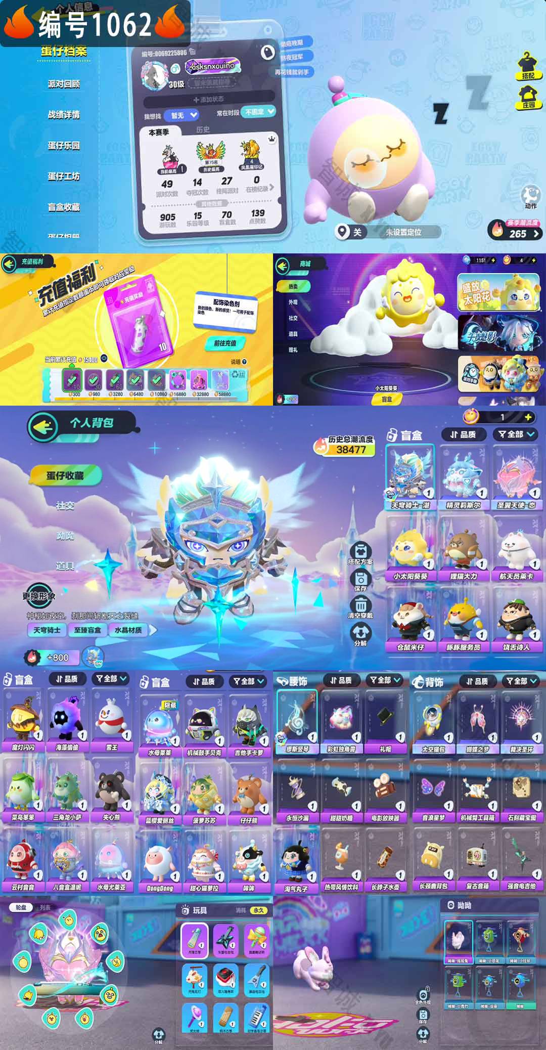 紫色套装: 小太阳葵葵 海藻偷偷 狸猫大力 航天员莱卡 仓鼠米仔 豚豚服务员 饶舌诗人 魔灯闪闪 雪王 菜鸟笨笨 三角龙小萨 失心熊 云村音音 八音盒温妮 水母尤莱亚 水母莱莱 机械鼓手贝克 吉他手卡萝 蓝樱爱丽丝 菠萝苏苏 仔仔熊 DongDong 甜心猫萝拉 哞哞 淘气丸子
