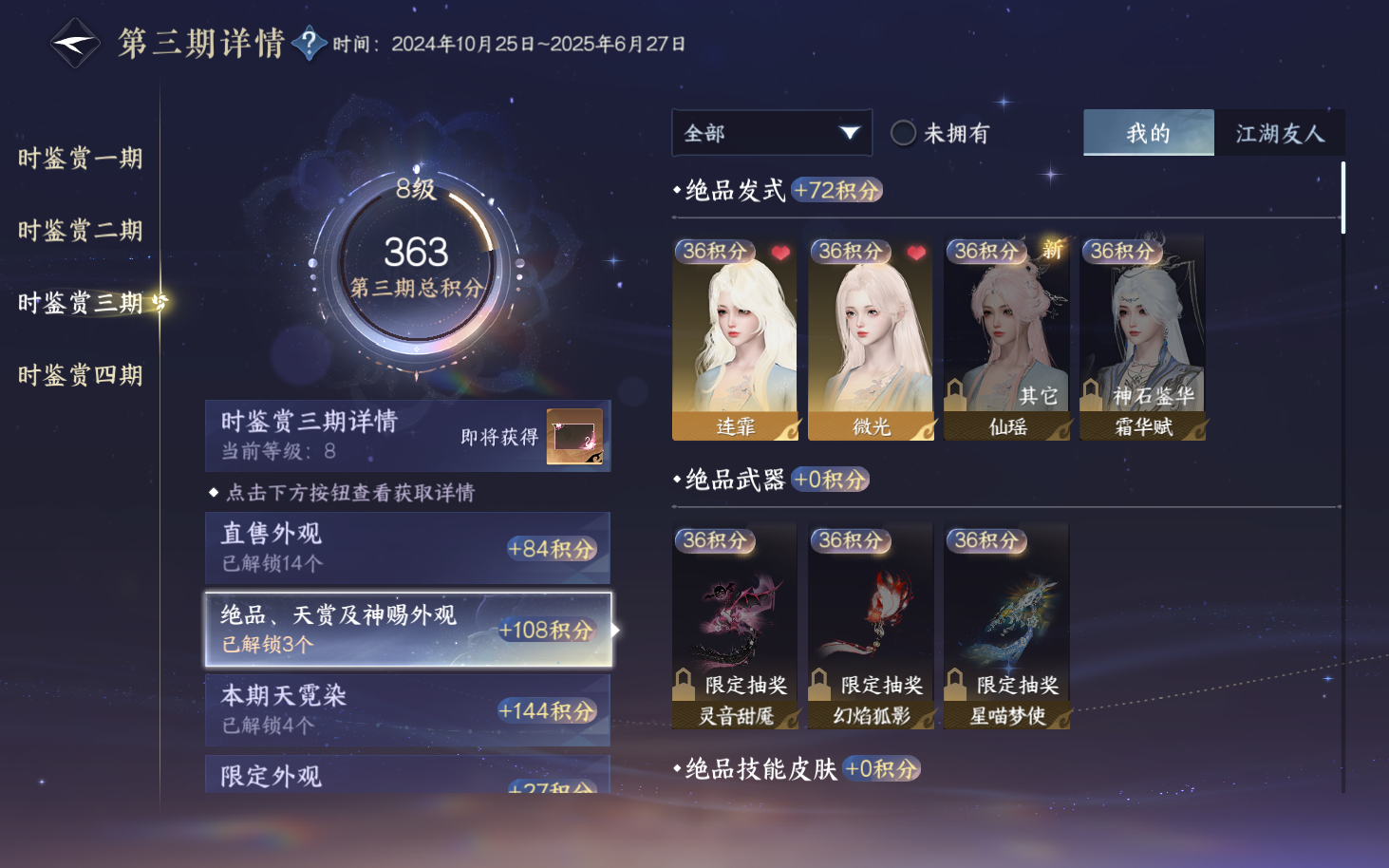 XY-076643134 战力值460477 总评460477 角色等级89 衣品值209790 国色值134400 已用天赏石29 未用天赏石0 天霓染数量9 【网易邮箱账号】 【无换绑冷却】 【素问】 【男】 【7级】 【把酒临风】 商城外观1 商城外观:云极天穹;