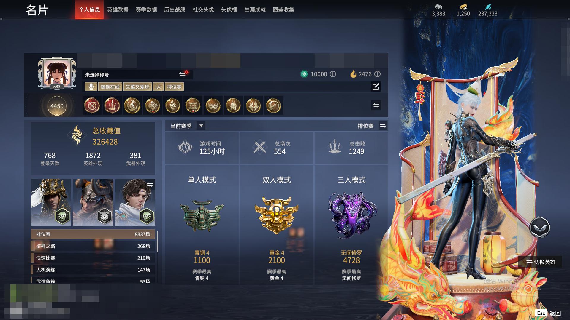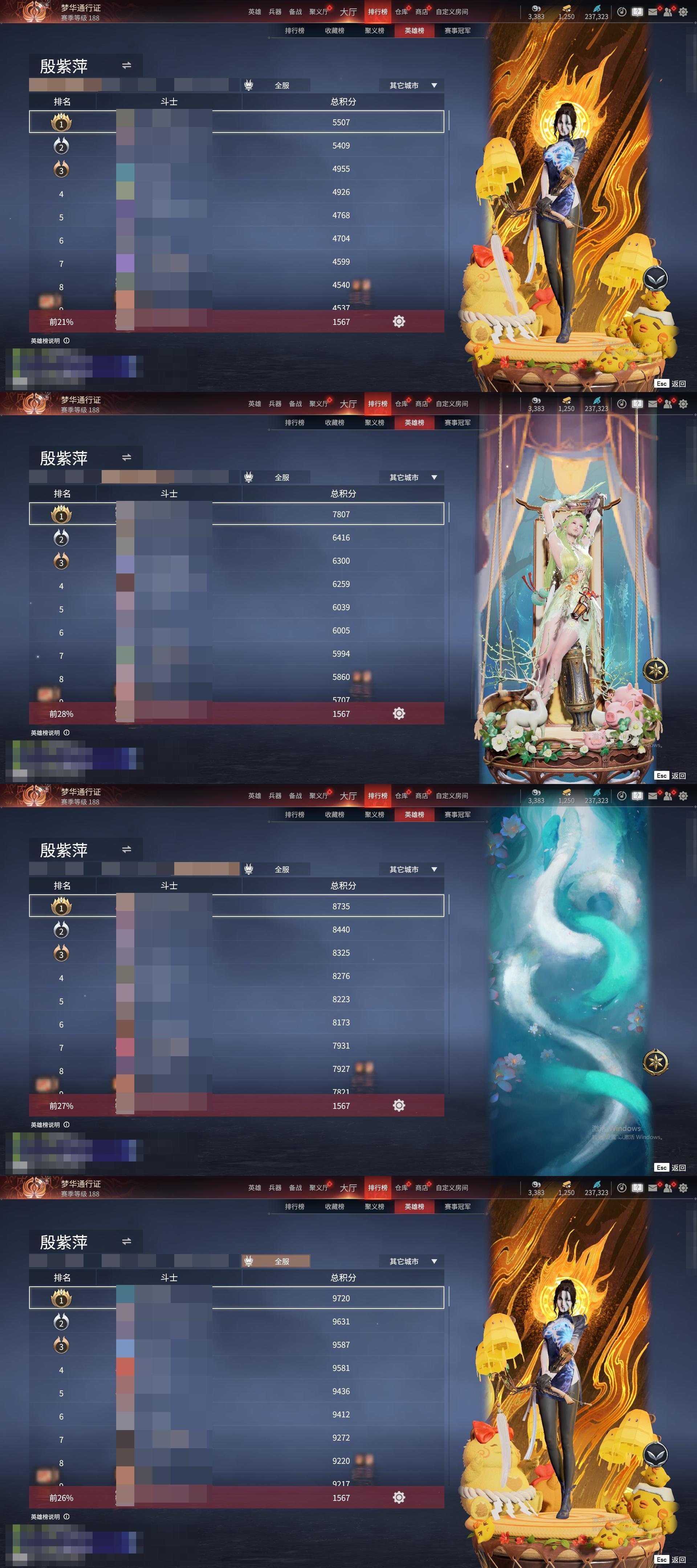 [11545988]双马尾女双马尾男!H10091.官服.8红304金, 技能奥义2, 总收藏值172274, 幻丝13833, 等级357, 三排黄金3, 通行证未升级Lv.1, 双马尾女双马尾男, 8红色神品: 赤皓新囍/初代玄女/星辉魔纱/戎金狼/熛怒炼火/蝶梦/泣珠龙纱/少阳剑【技能奥义】 炎烈珠/勾玉 宁红夜: 赤皓新囍/初代玄女/山川润/夜华朝/九阴圣女/碧水青天/泠川发/簪缨发/双马尾女 沈妙: 星辉魔纱/双马尾女 天海: 双马尾男 殷紫萍: 风雨谐/萍之缘/双马尾女 特木尔: 戎金狼/致命玩笑/唐三/海神发/双马尾男 季沧海: 熛怒炼火/食神/杰洛特/巨阙/信手斩龙/夏神祝融/腾烟发/江海发/烈火发/白狼发/含锋发/双马尾男 胡桃: 蝶梦/御宅花织/贵胄少女/月丹发/双马尾女 崔三娘: 泣珠龙纱/叶奈法/湘夫人/阿娜希塔/伏波龙女/术士发/双马尾女 岳山: 过江龙/双马尾男 无尘: 黄庭道/朝闻道/申公豹/双马尾男 顾清寒: 龙吉公主/紫微星命/禄运玉霄/仲夏霜华/绯霜发/红鸾星发/双马尾女 武田信中: 双马尾男 迦南: 玉叶景/浣烟纱/蜃楼魅影/琳琅发/双马尾女 胡为: 不败擂主/蛤蟆头领/福瑞天泽/桀骜发/双马尾男 季莹莹: 干将莫邪/缱绻发/双马尾女 玉玲珑: 妲己/广目天王/商月发/笼烟芍药发/双马尾女 哈迪: 夜绸袍/秀逸发/双马尾男 魏轻: 寿竹云春/玄冥发/双马尾女 刘炼: 金财聚辉/姜子牙/仙风发/双马尾男 张起灵: 双马尾男 席拉: 暧冬茶馨/雪铃绮歌/蜜语发/双马尾女 蓝梦: 双马尾女 拳刃: 天狐 长剑: 少阳剑/亢龙/含光承影/壶中日月/湖女之剑/炼/赤霄/隐锋/2674原型 太刀: 天劫/数珠丸/毅魂守/鎏金勺/鬼切/魂花晶 横刀: 烛泪 阔刀: 不祥绯刃/听涛_/雷王锯/青石猊/龙蟠 斩马刀: 三尖两刃刀/斩怨/潮/麒麟牙 枪: 建木/灵木角/长虹 棍: 倒马棍/学宫之杖/糖果棍/降魔 匕首: 仙舞/判官笔/曼提柯尔之牙/桡尺刀/马首刀 扇: 耀夜流华/腾云歌/舞扇 双截棍: 咯咯/嘶风/夔牛槌/精武 双刀: 怨憎/新月/破重云/蛋仔派对咸鱼/诡月链魂 双戟: 光影裁决 连弩: 千机弩/咕咕/天牛翼/御气弩/穿云燕 鸟铳: 引冰落/戏祥云 火炮: 兔华笼/钻山/雪国礼炮/龙息 五眼铳: 丹鹤/凝冰魄/机枪豌豆 弓箭: 乌木弓/仙毫/豹胎易筋弓 8红色神品: 赤皓新囍/初代玄女/星辉魔纱/戎金狼/熛怒炼火/蝶梦/泣珠龙纱/少阳剑 挂饰: 昆仑龙神冠/桃夭扇/委蛇朱冠/狐灵面/狐九尾/福虎帽/虎绒耳/窥鲸镜/大光相/桂花糕/几何钥/雁落笠/葫芦兄弟蛤蟆头/安乐冠/灵皇/团上头了/青龙盔/银雪/倾城/捕光镜/青铜神树/能源电池/封神榜/粽香远/羽扇/星斗扇/鬼玺/碎釜/癸卯_/鹿铃角/素心流光卷/琵琶梳/六角铜铃/明心/沐芳花篮/雪鹿雄角/竞无间男/探险家墨镜/糖心/曜石面具/脑子给我/红绒暖女/捆龙索/洪兽/梦棠/判官簿/安歌帽/风羽面/防风帽/甲辰龙/红绒暖男/叠嶂宝鉴/蛋仔派对条状眼镜/夜露帽/九阴鳞/婵娟/怜光满/鲛人角/癸卯兔/鎏金螭龙/阴阳灵狐/青莲唤云铃/金瑛冠/雪鹿雌角/冬棱/霞彩 飞索: 毒刺