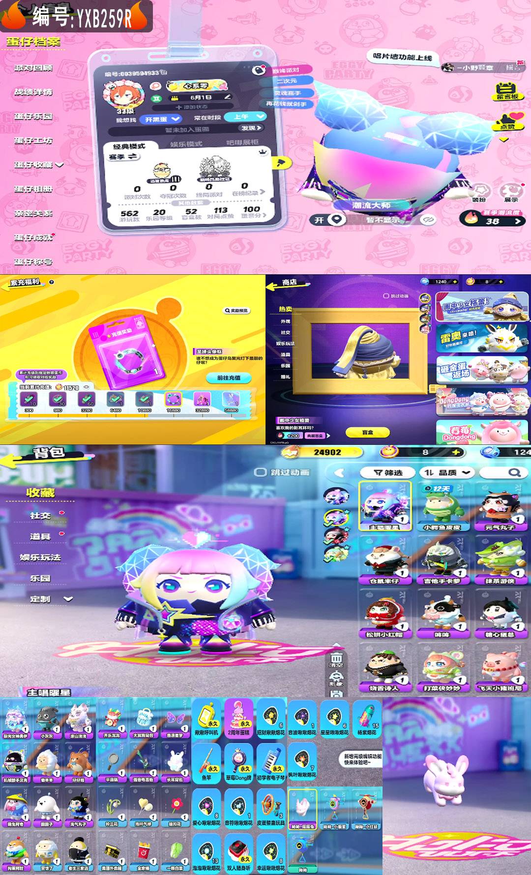紫色套装:元气丸子 仓鼠米仔 吉他手卡萝 抹茶游侠 松饼小红帽 哞哞 糖心蛋总 饶舌诗人 打菜侠妙妙 飞天小猪班尼 极光女神典伊 小灰灰 涂山浅浅 机械鼓手贝克 懒羊羊 仔仔熊 萌兔阿奇 圆圆子 淘气丸子 狗蛋阿甜