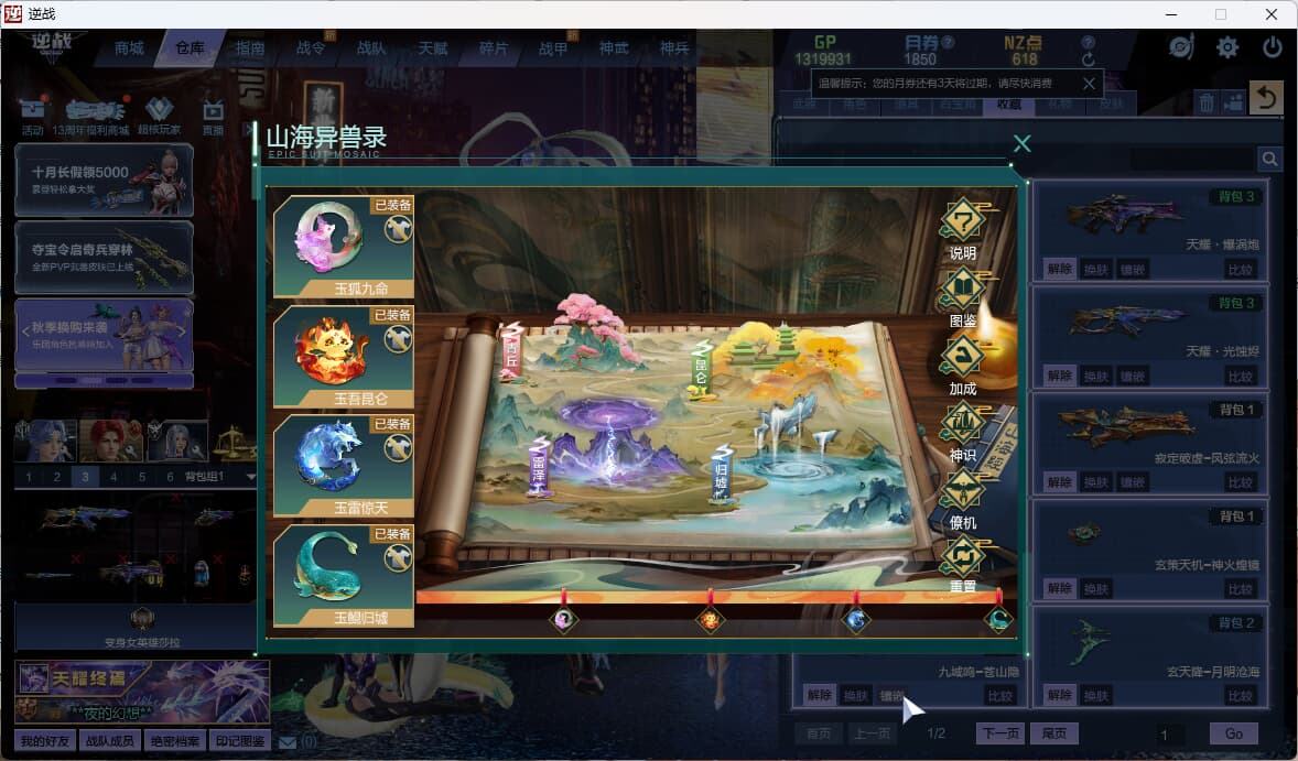 [11665570]yc7922/电信/天耀套/离震/狼王主武器/圣裁者/天王-月面狂想/幽冥毒皇/黄金之翼/极夜星辉/西部之王/重装利刃/龙御水吞天/大元素使安娜/机械鲲/羲禹/铁卫/强盾/掘金/游侠/剑风/风麟探首九件套/冰鸾凌霜九件套/可排位/