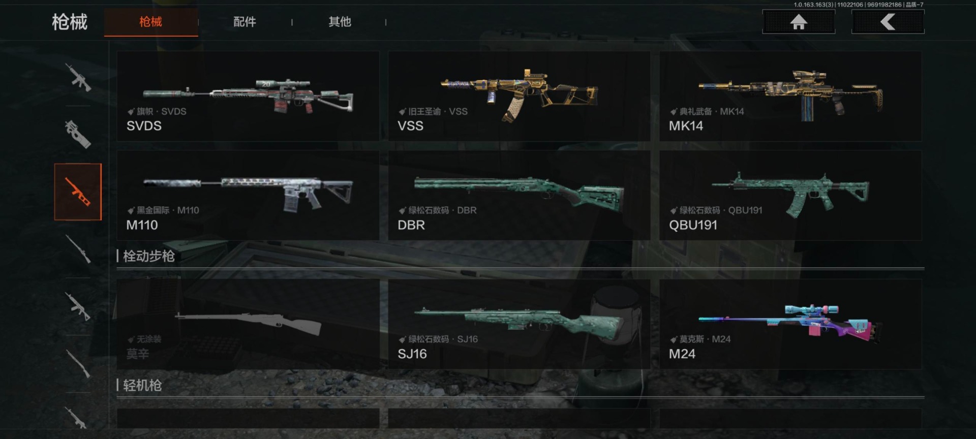 库存价值13.7 1近战武器 7金枪皮 可修改实名 【柯恩币数量】:1848【近战武器】:下弦月【金色枪皮】:告丧夜曲·AUG,旗帜·AEK,棱光裂变·QBU191,告丧夜曲·AR57,旧王圣谕·QBZ191,旧王圣谕·VSS,战术大师·AK102【紫色枪皮】:旗帜·SVDS,棱光裂变·ACE31,棱光裂变·AK74N,棱光裂变·AK102,棱光裂变·AKM,最后防线·AEK,禁止访问·UMP45,北国内卫·AN94,骑士之剑·SJ16,竞技·AUG,炎夏浪花·H416,快乐游戏·M110,典礼武备·M249,典礼武备·14,典礼武备·GROZA,猩红羽翼·VSS,无声暗月·AR57,竞技·M4A1,逆火·MDR,极恶·AUG,湖冰倒影·MP5,缟兵玄墨·MPX,07式林地迷彩·QBZ191,轰炸·AX50,娜迦·RPK16,涂绘猎人·AR57【角色装扮(紫)】:都市夜影套装