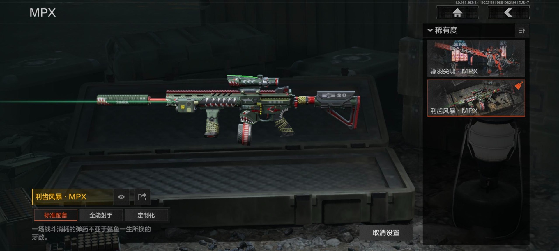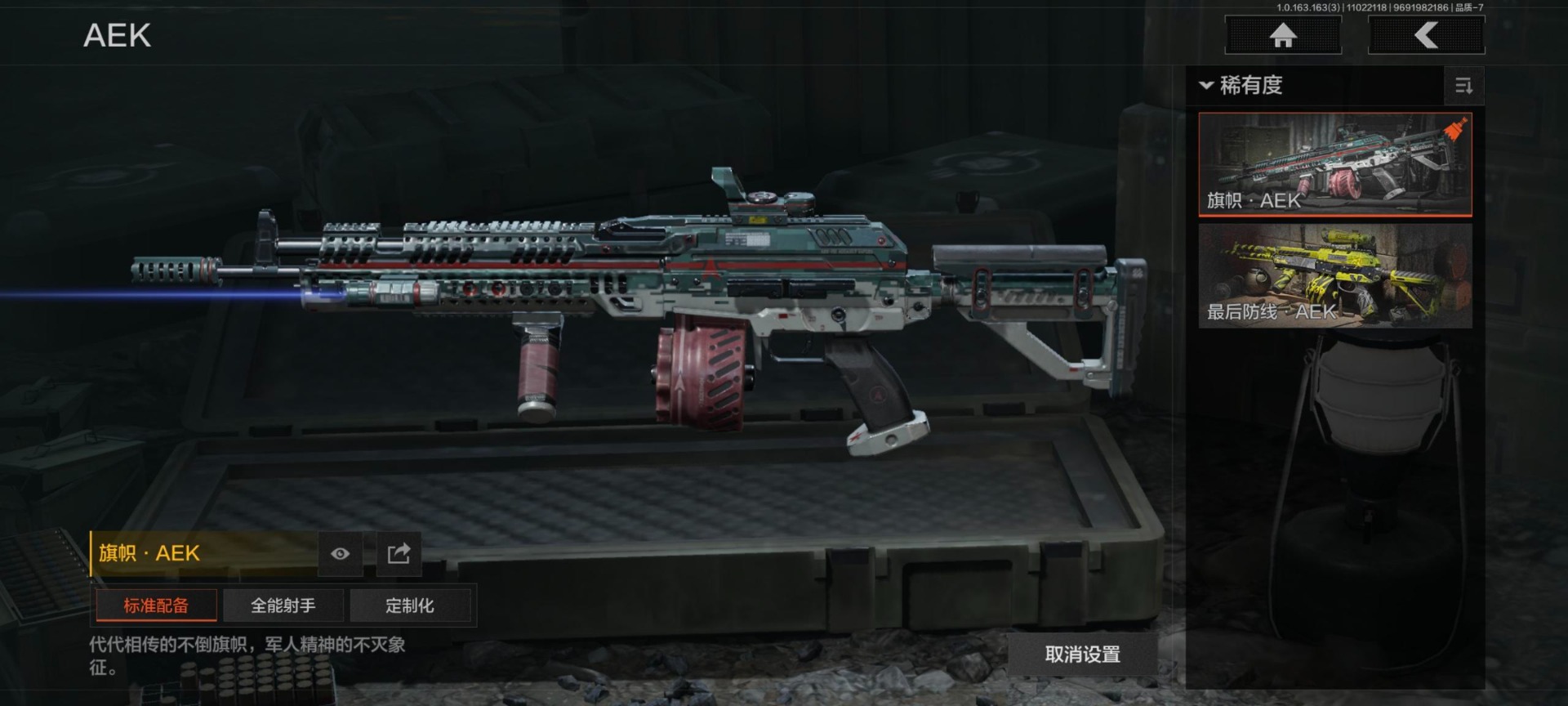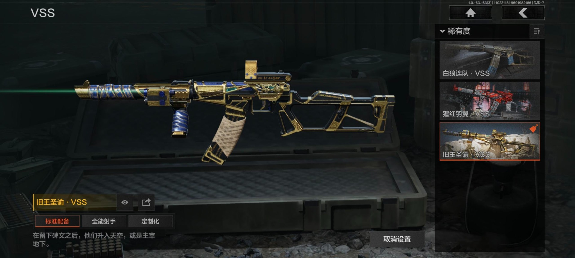 商品描述:[13572847]库存价值183.0 5金枪皮 可修改实名 【柯恩币数量】:0.2B【金色枪皮】:利齿风暴·MPX,旗帜·AEK,旧王圣谕·QBZ191,旧王圣谕·VSS,战术大师·VSS【紫色枪皮】:旗帜·SVDS,火力倾泻·RPD,棱光裂变·AK74N,棱光裂变·AKM,莫克斯·M24,莫克斯·AKS74U,竞技·MDR,无畏·USAS12,竞技·AUG,钢铁真理·F2000,典礼武备·14,骤羽尖啸·MPX,利齿风暴·T03,利齿风暴·T79,猩红羽翼·VSS,白狼连队·VSS,竞技·M4A1,娜迦·RPK16【角色装扮(紫)】:王国卫队礼装,金狮护身·转运套装,都市夜影套装