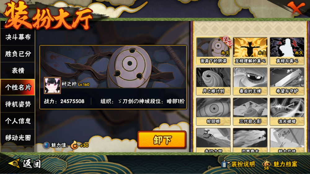 苹果Q309区:可二次实名 VIP13,战力:13070313,S忍者数量:39,A忍者数量:58,本服排名:187,战区排名:未上榜,通灵兽数量:22,时装数:18,段位:暗部1阶,忍者星数:68711s❤20A佩恩 「天道」;大蛇丸;千手扉间;纲手;自来也;千手柱间;长门 「秽土转生」;艾 「四
