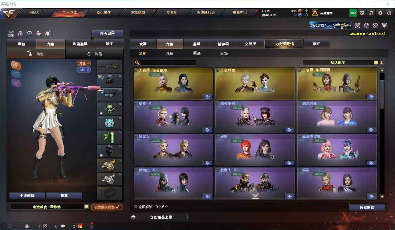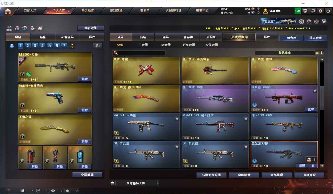 陕西一区 有二次 可排位 78v 【传说破晓+晴雅+炽芒蝶刃】【M200-幻神+幻神-宠儿+幻神-N9+幻神-星火小队签名珍藏版+幻神-冠军之幻+幻神-丹凤+幻神音效卡+USP雷暴+柯尔特-荣耀世冠+冠军之刃*2】【王者星霆】【QBZ金色蔷薇+QBZ-CFS2024+QBZ王者蔷薇】【Scar白虎+白虎-暗星+M4A1-青龙】【火麒麟+火麒麟-HeartShot+火麒麟音效卡】【雷神+雷神-巅峰荣耀+雷神-LGD18冠军】【毁灭+毁灭-HeartShot+毁灭-AG15冠军+毁灭音效卡】【天龙+天龙-能量核心】【极光+极光音效卡】【斩神刀-雷暴+雷暴手雷套】【幻灵之锋+幻灵手雷套】【雷霆王者之锋+雷霆王者手雷套】王者之魄 王者之势 王者之烈 王者玉锋 炫金火麒麟 炫金骑士 炫金毁灭 炫金天神 无影 极光 裁决 修罗 天神 屠龙 麒麟刺 【小人枪】COP白鲨 【角色】4防王者云悠悠 晴雅 奇洋探员 王者玲珑 王者凌霄 云海玲珑 岚兮儿 魅影 如赛季更新等不可抗拒因素发生变化、时限道具不保证所剩时间 如有号中有战队需解除或退出只能协调解除不保证解除成功四川一区 有二次 可排位 11v 【M200-幻神+幻神-纸灯龙】【王者芳薇】【M4A1-青龙】【幻灵之锋+幻灵手雷套】天启 黑鲨 修罗 等各种永久道具详情看图(截图展示段位不代表实际段位,如赛季更新等不可抗拒因素发生变化、时限道具不保证所剩时间,其余道具看截图或咨询客服)